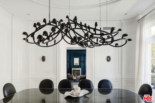 Welcome to 12770 S Bristol Circle an 11,800-SF, 7-bed, 11-bath Brentwood Park estate blending chateau-inspired architecture with chic modern style. Featured in Architectural Digest(Nov'21), this Studio William Hefner-designed home evokes Belle poque elegance. Inside, discover hand-selected marble, custom stonework, and lacquered finishes across a formal dining room, library, office, La Cornue kitchen, and family room. French doors flood the home with natural light. Upstairs, the primary suite offers dual marble baths, walk-in closets, a sitting room, and a private den. Lush grounds evoke the French countryside with manicured gardens, a pool, spa, bocce court, and winding paths. The gated lot includes an attached 2-car garage as well as a 3-story guest house with a kitchen, theater, speakeasy, wine cellar, and 2 ensuite bedrooms. Located in a premier school district near top shopping and dining, this private retreat is a timelessly chic Brentwood gem.