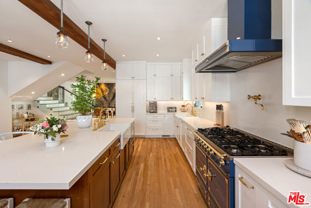 Bespoke Coastal Sanctuary on the Iconic Silver Strand - Located in the heart of the Silver Strand, this home stands as one of the most meticulously dialed-in properties in this sought-after coastal neighborhood. Just seconds from the sand and steps to the scenic Lighthouse Bridge, this rare 3,500+ sq ft offering pairs architectural precision with relaxed coastal living. A solid walnut front door opens to sunlit interiors with white oak floors and a sculptural walnut staircase. French doors and a custom back-lit walnut skylight with triple-laminated glass wash the space in natural light, while a dramatic wood-burning/gas fireplace wrapped in eight slabs of granite anchors the great room. The chef's kitchen impresses with a La Cornue range, Liebherr Monolith refrigeration, Rohl fixtures, Caesarstone surfaces, and custom walnut cabinetry. A true Dolby Atmos media room (14 speakers, double 3M soundboard) delivers cinematic immersion. The serene primary suite features an Amerec steam shower and cast-iron clawfoot tub; all baths showcase Starfire glass and Italian Marble, and all closets are cedar-lined and feature customized built-ins. Six skylights and multiple outdoor moments - an English-style front walk, private courtyard, bamboo-decked roof deck and lush, low-maintenance landscaping invite effortless indoor/outdoor living. Rare for the beach, a climate-controlled, insulated 4-car garage with built-ins adds exceptional functionality, while an infrared sauna brings wellness home. Set within a private, tightly held enclave with 24/7 security patrol, it's a short stroll to Abbot Kinney, the Venice Canals, the Farmers Market, and the Westside's best dining and boutiques.