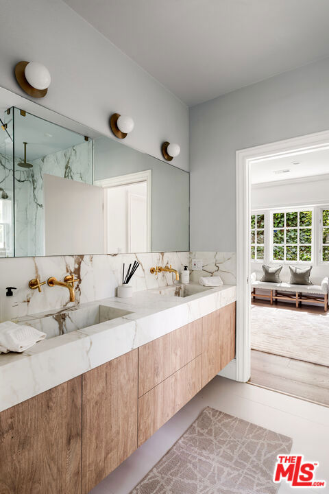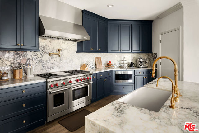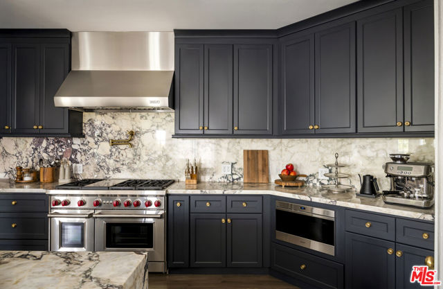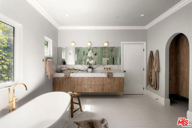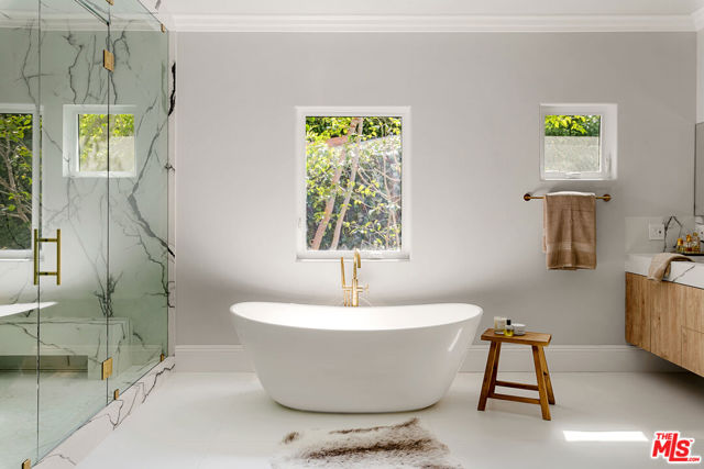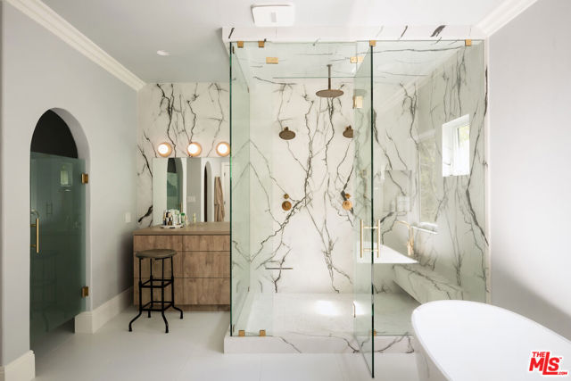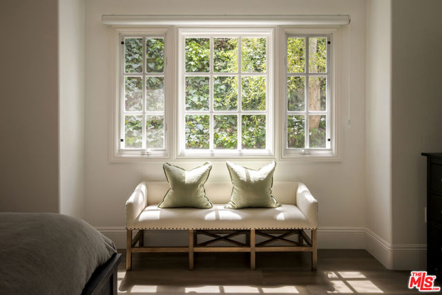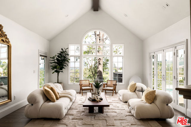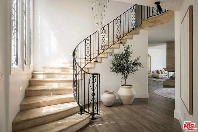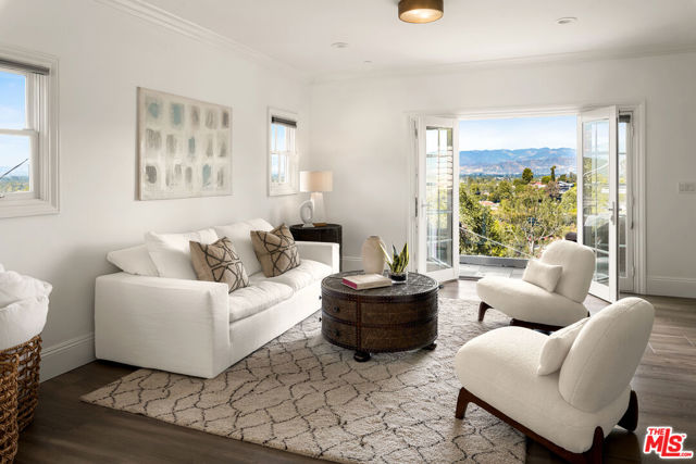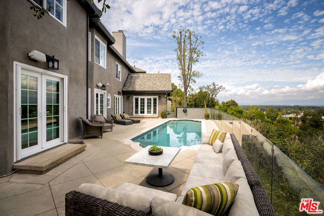 Set behind gates at the end of a quiet cul de sac in coveted Longridge Estates, this six bedroom, five bath residence offers nearly 5,900 square feet of refined living on over half an acre with mesmerizing panoramic views and privacy of the highest order. Remodeled with intention and upgraded to an exceptional standard, the home is crisp, bright, and effortlessly livable, comfortable yet refined. A grand foyer introduces a sense of scale and classic luxury, with high ceilings and warm hardwood floors guiding an open and well composed layout. The chef's kitchen is beautifully appointed with custom cabinetry, striking stone, and top tier appliances, seamlessly connecting to the main living spaces. A thoughtfully designed floor plan includes a proper children's wing, while the primary suite serves as a true retreat, expansive and serene with a substantial walk in closet and a spa caliber bath featuring heated floors, soaking tub, oversized steam shower, smart toilets, UV lighting, and the finest finishes throughout. Walls of glass open to a private outdoor setting with swimmers pool, lounge areas, and unobstructed views with no neighbors in sight. The end of cul de sac location offers a rare sense of space and community, creating a quiet and usable extension of the property for play and everyday living, while additional land below presents an opportunity to further expand and create a more traditional yard if desired. A secure sanctuary with patrol presence at the top of the driveway, this is a home where privacy is paramount without sacrificing connection or convenience. Moments from Ventura Boulevard yet completely tucked away, this is a property that lives beyond its footprint and a rare and compelling offering in one of Studio City's most desirable enclaves.