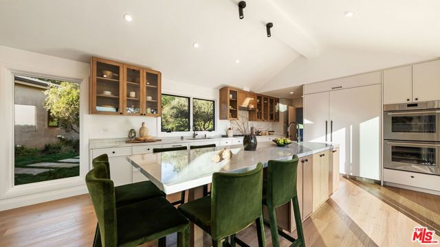 BEST-PRICED DEAL IN MANDEVILLE CANYON ON AN OVER 3-ACRE LOT. Hidden at the end of a private road in prime lower Mandeville, The Rivers Estate is a rare 3.5-acre sanctuary that defies comparison. Located just minutes from the Brentwood Country Mart, but a world away, this one-of-a-kind property offers a lifestyle of absolute privacy and panoramic scale. This sophisticated single-story residence features 5 bedrooms and 6 bathrooms, defined by soaring vaulted ceilings and windows that frame the landscape from every vantage. Designed for the quintessential California lifestyle, the light-filled interiors transition effortlessly to curated gardens and expansive entertaining spaces. The kitchen and family room serve as the heart of the home, opening to a resort-style backyard. Here, a sparkling pool and outdoor kitchen are set against a backdrop of rolling canyons and mountains, stretching all the way to Catalina Island and the Pacific horizon. The romantic primary suite is a masterclass in serenity, capturing mountain and ocean vistas. This private wing offers two boutique-style dressing areas, a morning coffee bar, and a spa-inspired bath that spills out into a tranquil Zen garden. The estate's vast acreage is a playground for the senses, featuring an expansive lawn, perfect for grand-scale events or family play, a lush orchard with dozens of mature fruit trees, a gym, two-car garage, and generous parking for your guests. The Rivers Estate is not merely a residence; it is a serene, unparalleled lifestyle for those who demand both proximity and peace.