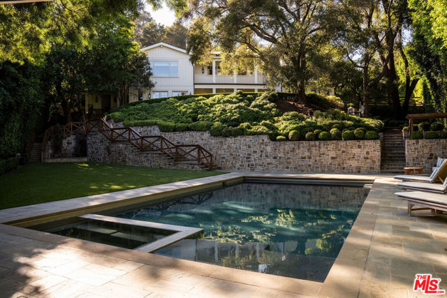 Step behind a discreet gate into a private oasis. A gentle stream sets a calming tone as views open to nearly an acre of park-like grounds. Stone pathways lead to beautiful yards for relaxation and play, a sports court, a gorgeous pool area with spa and guest house. The main residence, reimagined with Maurice Gadson Design, embodies simplicity, beauty, and craftsmanship. The dramatic living room and kitchen with soaring ceilings and seamless garden access are the heart of the home. The custom wood paneled media room and secondary family room were designed for comfort and flexible living. Every detail speaks of curation: Samuel Heath and Waterworks fixtures, vintage French lighting, textiles by Holly Hunt, Thomas Lavin, Schumacher, Missoni runners, Calcutta stone, custom millwork, and Christian Lacroix wallpaper. Smart automation and tailored shades complete the experience. The outdoor kitchen and dining area with views of your very own vineyard elevate one's entertaining experience and evenings by the outdoor fireplace brings birdsong, owl calls, and absolute tranquility. Boca de Canon is a setting that truly cannot be replicated.