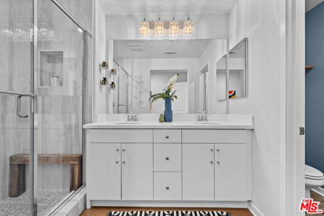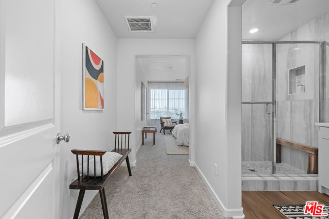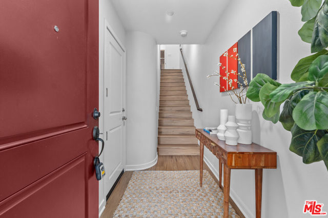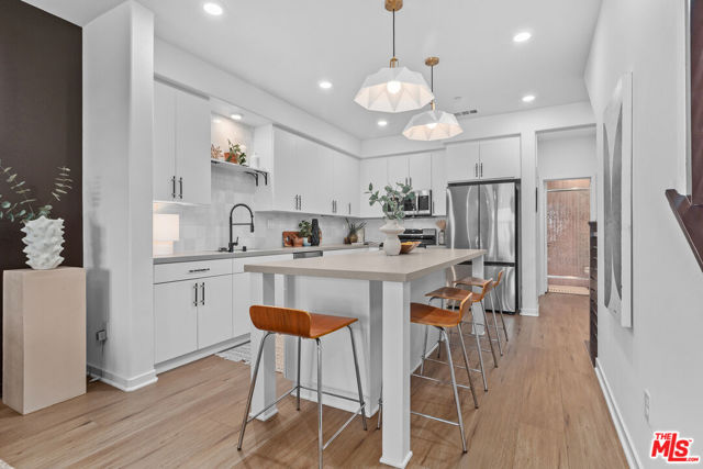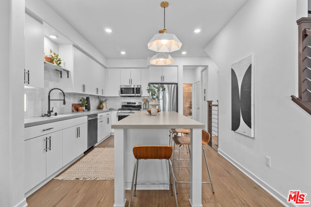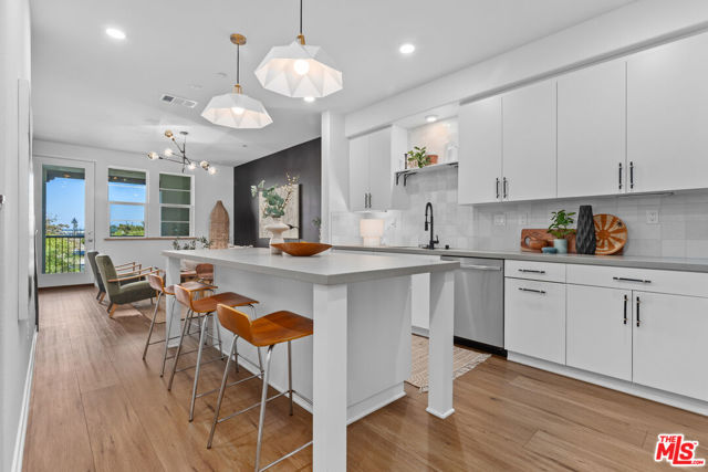 Built in 2023, this home showcases an exceptional fusion of contemporary design and modern elegance. Step inside to a welcoming foyer that guides you upstairs to a spacious open-concept living area. Here, the kitchen, dining, and living spaces flow together effortlessly, creating a harmonious environment for relaxation and entertainment. The kitchen is a culinary haven, equipped with stainless steel appliances, including a dishwasher, refrigerator, built-in microwave, and stove, alongside an eat-in design perfect for casual meals. A bedroom and bathroom on this level offer added convenience and the option of a guest bedroom or an office. Enjoy the allure of a delightful patio off the living room, perfect for hosting or unwinding. This home is designed for comfort, featuring dual-pane windows for energy efficiency, complemented by recessed lighting and elegant light fixtures that complement the beautiful hardwood floors. Upstairs, you will find a primary suite and a junior suite. The primary suite serves as a personal sanctuary, boasting a generous walk-in closet, a luxurious en-suite bathroom, and a bright window welcoming in the ocean breeze. The junior suite, located across from the primary suite, is perfect for guests who want the privacy of their own bathroom. Despite its proximity to the beach, the central A/C and heating ensure year-round comfort. The practicality is further enhanced by an in-unit laundry room, located on the same floor as the primary suite. Relax outdoors in the gated community featuring a BBQ and picnic area. Pet-friendly and with ample guest parking, this unit also offers solar panels and is FHA and VA approved. Experience modern living at its finest in a coveted Gardena neighborhood.