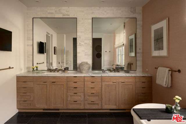 Welcome to 14952 Alva Drive, a meticulously designer done home in the prestigious Huntington Palisades. Recently renovated by Becker Studios, this gated residence sits behind mature landscaping, offering exceptional privacy and effortless sophistication. Thoughtfully designed to balance refined elegance with laid back coastal living, the home embodies a timeless sense of warmth and tranquility. Boasting just under 7,000 square feet of living space on a 12,000+ square foot lot, the property features six spacious bedrooms and eight bathrooms, perfectly suited for both everyday living and entertaining. The interiors are light-filled and inviting with high ceilings and incredible scale throughout. The bright, flowing floor plan showcases curated materials and meticulous craftsmanship, featuring a formal living and dining room, family room, separate media room, kitchen and dining area, two powder bathrooms, 5 spacious bedrooms with en-suite bathrooms upstairs including a separate office and a finished attic space. Light illuminates the main living area, where large glass doors frame views of olive trees and the lush backyard beyond. The chef's kitchen, anchored by custom cabinetry and high-end appliances, features sliding glass doors that open out onto the outdoor patio and fireplace, perfect for indoor and outdoor entertaining and dining al-fresco. A beautifully integrated pool house offers flexible use as a guest suite with a sauna and cold plunge, private office, or creative studio. Outside, the resort style grounds include a sparkling pool, cold plunge, outdoor shower and spa surrounded by multiple lounging and dining areas that invite year round enjoyment. Every detail of the home has been considered for comfort, function, and design integrity. State of the art technology, including a Crestron home automation system, enhances daily living with effortless control and modern convenience. A rare offering where architecture, comfort, and location converge in one of the city's most sought-after enclaves. This is an incredible opportunity to skip the rebuild and come back home to the one of the best homes in the Huntington.
