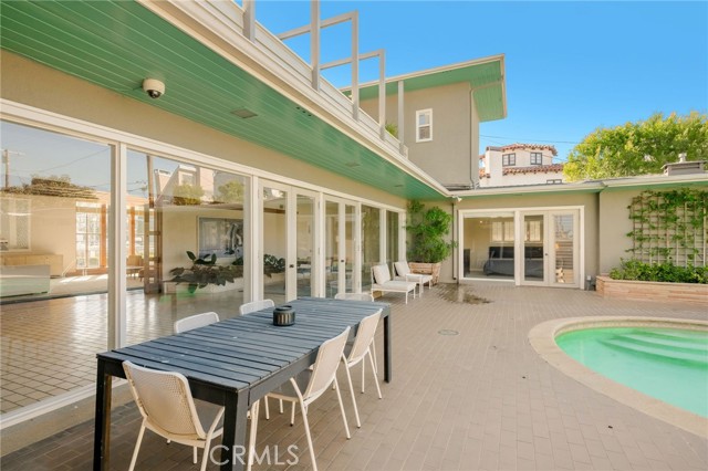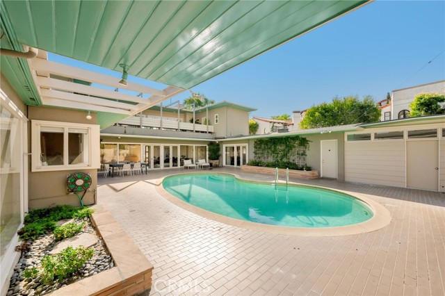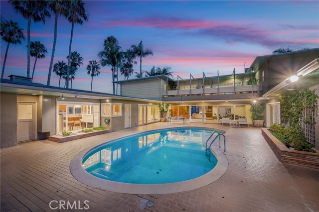 Among California’s most distinctive waterfront residences, this iconic Mid-Century Modern estate on Naples Island stands as both an architectural treasure and a piece of Long Beach history. Designed by acclaimed architect George M. Montierth, the home was originally commissioned as an executive retreat, created to entertain corporate guests drawn to Long Beach during the city’s thriving mid-century era. Its grand scale, dramatic design, and commanding waterfront presence reflect that legacy of hospitality and prestige. Perfectly sited at the convergence of Naples Canal, Rivo Alto Canal, and The Colonnade Canal, the residence captures sweeping views of Alamitos Bay and The Peninsula from one of the island’s most sought-after locations. A private marina spans 135 feet of open-water frontage and includes a 39-foot U-shaped slip with a 13-foot beam—an extraordinary amenity for yachtsmen and water enthusiasts alike. The 6,182-square-foot home is centered around a serene courtyard with a swimming pool, offering seamless indoor-outdoor living. A soaring 20-foot entry sets the stage for dramatic entertaining, leading to a paneled formal living room with marble fireplace and walls of glass overlooking the water. A full walk-in wet bar, elegant dining room, and expansive gathering spaces recall the home’s original purpose as a setting for distinguished entertaining. Two generous primary suites provide luxurious retreats—one with its own marble fireplace—both with walk-in closets, vanity rooms, and spa-inspired baths. Additional highlights include a private guest house with full bath, a workshop, and a motor court accommodating up to 6 cars. Positioned across five legal lots, including three waterfront parcels, the estate offers 112 feet of water frontage and exceptional versatility. Whether preserved as a Mid-Century showpiece, reimagined as a contemporary masterpiece, or developed anew, it represents one of the rarest opportunities on Naples Islands. Recent updates include a new roof, fresh paint, resurfaced upper deck, and a newly completed seawall, ensuring both beauty and structural integrity for years to come. A true legacy estate, this home embodies the elegance of its mid-century origins while offering unmatched potential on one of Southern California’s most prestigious waterfronts.