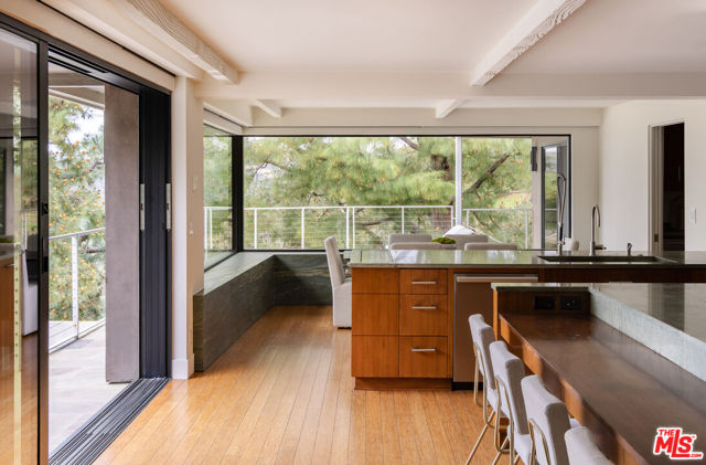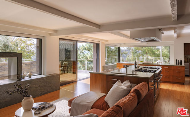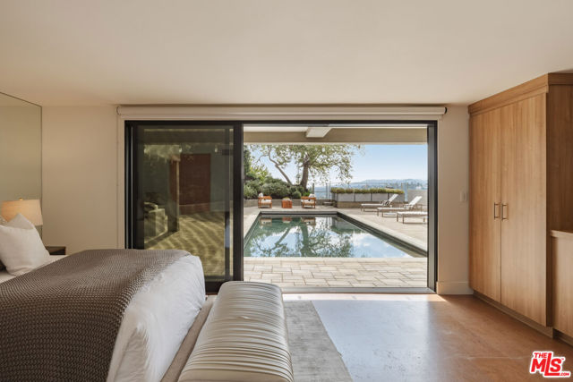 Perched in the prestigious enclave of Trousdale, this striking two-story mid-century estate seamlessly blends timeless architecture with breathtaking ocean and mountain views. Thoughtfully designed for both grand entertaining and intimate living, the residence boasts expansive interiors, a harmonious indoor-outdoor flow, and a gated motor court with a three-car garage. The main level features a sophisticated living room, formal dining area, private office, and a chef's kitchen outfitted with top-tier Miele and Wolf appliances. The impressive primary suite boasts dual bathrooms and walk-in closets, offering a serene retreat. Descending to the lower level, a casual family/media room and bar open onto an expansive backyard oasis. Enveloped by mature landscaping, this serene outdoor sanctuary offers covered and open-air patios, an oversized pool, and a tranquil meditation garden.Perfect for entertaining or intimate evenings. Close to Downtown Beverly Hills' renowned restaurants and boutiques.