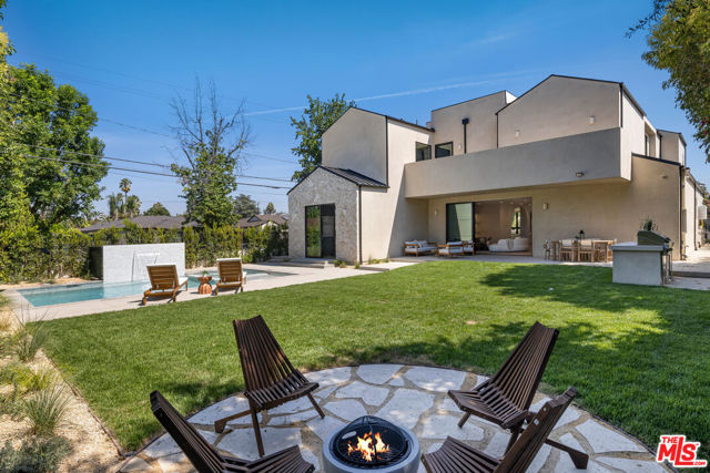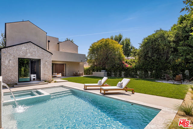 Welcome to 16643 Addison Street, an exquisite modern retreat in the heart of Encino that blends architectural elegance with warm livable comfort. Recently undergoing an extensive remodel, this home features light-filled interiors with soaring ceilings, wide-plank oak flooring, and an open-concept layout where the gourmet kitchenwith sleek custom cabinetry, premium stainless steel appliances, and an expansive islandflows seamlessly into the dining and living areas accented by designer lighting and a grand fireplace. Spacious bedrooms offer serene color palettes and luxurious finishes, while spa-inspired bathrooms showcase designer tile, floating vanities, and high-end fixtures in brushed gold tones. Multiple living spaces, including a versatile home office overlooking the pool, provide flexibility for today's lifestyle. An attached 1-bedroom, 1-bathroom ADU offers a private retreat for guests, extended family, or potential rental income. Outside, the private backyard is an entertainer's dream with a sparkling pool and spa, sun-soaked lounging deck, cozy firepit, and built-in barbecue surrounded by mature landscaping for privacy. Perfectly situated near fine dining, upscale shopping, and top-rated schools, this stunning home offers the ideal blend of modern sophistication and California comfort.