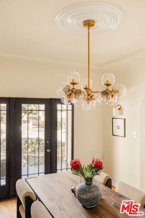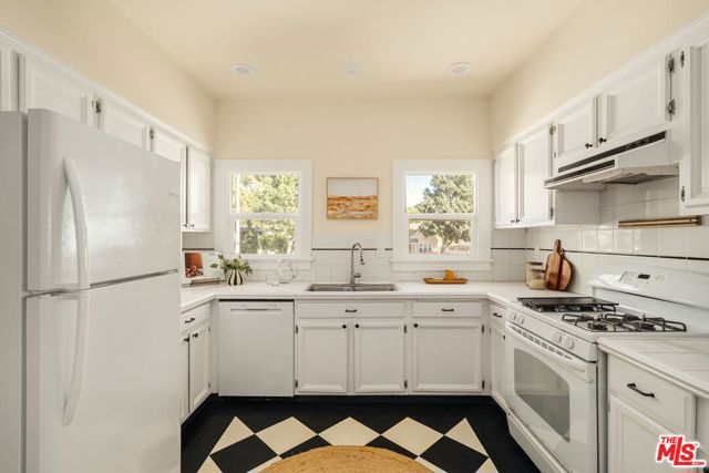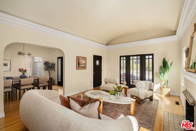 Charming Tudor located in desirable Pasadena! Thoughtfully refreshed while maintaining its timeless character, this home welcomes you the moment you step inside with gorgeous architectural arched ceilings and classic French windows that fill the space with natural light.Original hardwood floors from the time the home was built add warmth and authenticity throughout, while the dining room flows seamlessly into the chef's kitchen, featuring ample cabinet space and a pantry, creating an ideal layout for both everyday living and entertaining. The kitchen features a wine holder cabinet and cleverly hidden laundry behind closet doors for a clean, streamlined look. Recessed lighting throughout the home is complemented by new dimmable light fixtures and sconces (2026), creating a warm and inviting ambiance. The primary suite includes an ensuite bathroom with a new vanity, while the hallway bathroom is conveniently located between the two additional bedrooms for easy access. Major upgrades provide peace of mind, including new landscaping with a sprinkler system (2026), fencing installed in 2020, an upgraded electrical panel in 2020, complete copper re-piping throughout, and a new (2022) Cool Plus roof with a Lifetime Warranty. Outdoor spaces are equally inviting, featuring a freshly painted porch and front door for added curb appeal, a private patio area perfect for relaxing evenings, and a detached 2-car garage with additional storage above. A wonderful opportunity to own a beautifully updated home that blends classic Tudor charm with thoughtful modern improvements in one of Pasadena's most sought after communities.