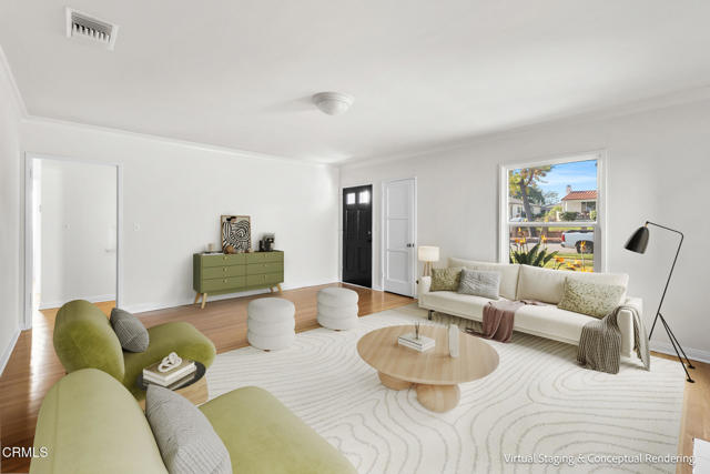 ***This neighborhood was not burned by Eton fire.***Main house (1,257 sq ft) with an additional detached studio (approx. 368 sq ft) and a detached two-car garage, all situated on a 7,613 sq ft lot.The 2-bedroom, 2-bath main residence features fresh interior and exterior paint, a newly painted driveway, new hardwood flooring throughout, and a new HVAC system.Upon entry, you are welcomed into a bright living room that flows into a formal dining room. The kitchen opens to a comfortable gathering area with glass doors leading directly to the backyard, creating a seamless indoor-outdoor connection. Laundry is conveniently located in the kitchen. The primary bedroom includes an en-suite bathroom.The detached studio with its own bathroom offers excellent flexibility and is ideal for guests, a home office, or a creative space. A long driveway, secured by an iron gate, leads to a spacious yard and the detached garage, providing both functionality and ample outdoor space.The property also includes a lifetime warranty from Rodent Stop for rat and pest control.