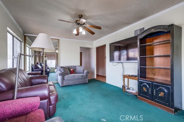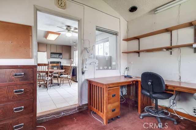 Welcome to 1721 Glenridge Circle, a spacious West Covina home with great potential and a versatile layout, ready to be reimagined into your dream residence. The exterior features a light gray finish with crisp white accents, with a driveway and walkway leading to the front entrance. Inside, the living room offers a comfortable gathering space with large windows and a ceiling fan, setting the tone for the home’s open layout. From here, one opening connects directly to the kitchen, while the other leads down a central hallway. The kitchen flows into a dining area with sliding glass doors opening to the backyard, and further into a cozy family room highlighted by vaulted ceilings and a bold red brick fireplace. The main hallway includes a spacious room with a walk-in closet (flexible as a bedroom or office), another secondary bedroom with storage and a ceiling fan, and a full bathroom. At the end of the hall, a separate vanity area connects to an additional bathroom and a third bedroom featuring vaulted beam ceilings. A large attached garage is also accessible from this hallway, providing ample storage and utility space. Out back, the wraparound yard offers a mix of paved and landscaped areas, including space for outdoor dining or grilling, a small storage shed, and shade provided by mature trees just beyond the property line. With its generous layout, multiple living spaces, and inviting outdoor areas, 1721 Glenridge Circle presents a fantastic opportunity for customization in a desirable West Covina neighborhood.