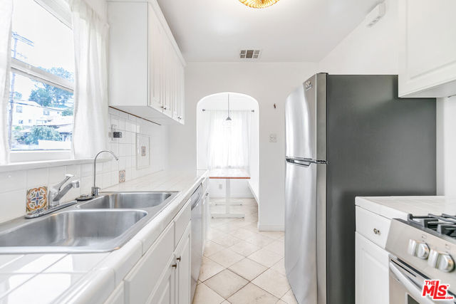 What a showstopper! This single-family home is located on a quaint street in Echo Park, just a short stroll to all of your fave coffee shops, restaurants, and Sunset shops. Some super close spots include Valerie, Canyon Coffee, Cookbook, and Glowing Juices to name a few. Get your daily steps in and reward yourself with an iced latte or green juice while you're at it. You can also go for a hike in Elysian Park, one of the most beautiful walking areas in LA, with stunning views of downtown! Just in time for spring! Back at home, thoughtful decisions have been made throughout the property to keep the original charm but offer updated features. Through the front door, you are immediately greeted by the sunny living room with windows all around. A beautiful built-in sits at one end of the living area and will be the perfect spot to house your favorite knickknacks and decor pieces. The galley kitchen can be accessed through an arched doorway and comes equipped with tile countertops, all stainless steel appliances, upper and lower cabinetry for storage, and a sweet eat-in kitchen nook with built-in bench seating and a table. We could imagine brunches enjoyed here or even a day of working from your laptop if you work from home. The bedroom sits in the back of the property so you can escape at the end of a long day. The bedroom features two closets, a Herman Miller light, and easy access to your bathroom area. Last but not least, don't forget to enjoy the private back patio as Spring approaches! Set up a grill, outdoor dining area, and hammock for the perfect sun-filled weekend. Also, located in the back patio is your private laundry area and a shed for additional storage if needed.