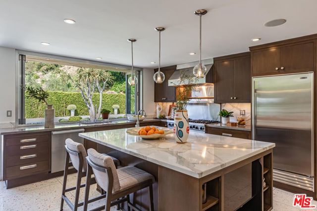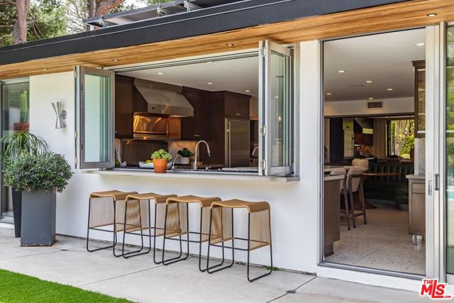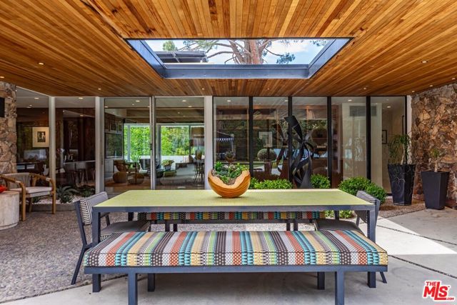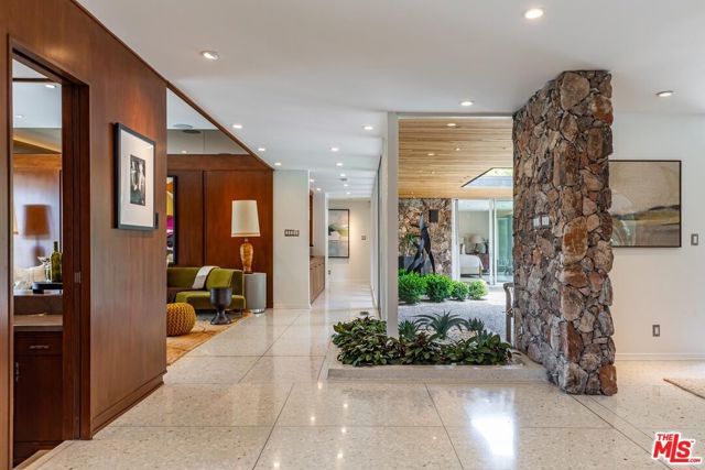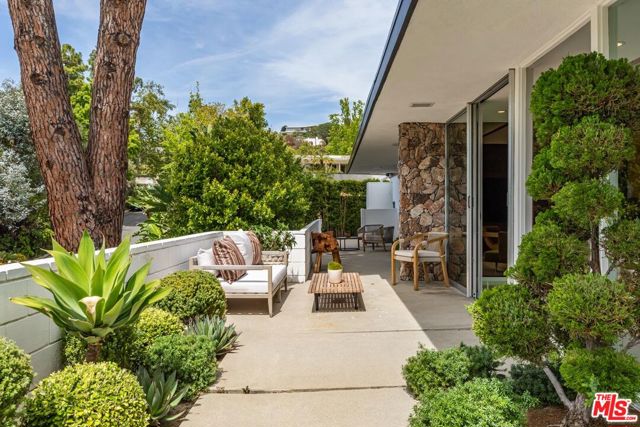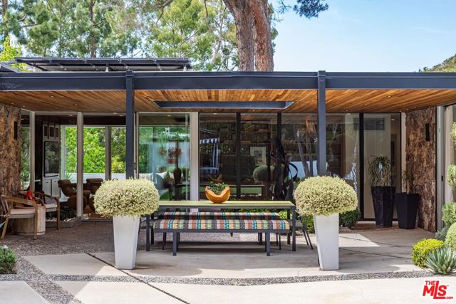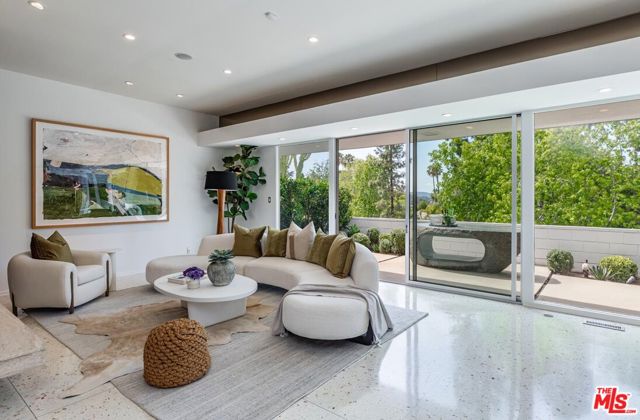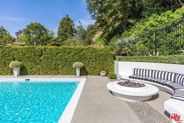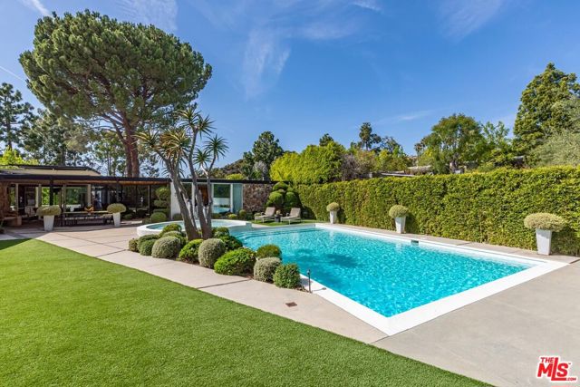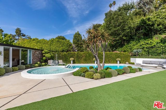 Timeless in Trousdale, this extraordinary 3,890-square-foot residence rests on a sweeping 21,467-square-foot lot, masterfully reimagined to honor its architectural lineage while embracing a refined, modern sensibility. A storied setting for high-profile gatherings from intimate soires to notable charitable events the home carries a legacy of effortless entertaining and understated glamour. Originally designed by architect Marvin Berman, a protege of Richard Neutra, the estate is a study in elevated mid-century design. Clean lines, curated materials, and a seamless indoor-outdoor flow define the experience, with walls of glass framing verdant hillsides and exceptionally private grounds, inviting natural beauty into every moment. The interiors unfold with quiet sophistication, balancing warmth and scale. At the center, the chef's kitchen blends function and style, anchored by a generous island, top-tier appliances, and a charming built-in banquette that nods to the home's heritage. The primary suite offers a true sense of retreat, complete with dual baths and expansive closets, designed for both comfort and ease. Outdoors, a newly renovated pool and sculptural fountain create a serene, resort-like setting, where the sound of water and layered landscaping elevate the ambiance from day to evening. Modern enhancements including a full smart home system, Tesla backup batteries, and an EV charger are thoughtfully integrated, ensuring contemporary convenience without disrupting the home's architectural integrity. Just moments from world-class dining, premier shopping, and Beverly Hills' most iconic destinations, this is Trousdale at its most enduring where architectural pedigree, complete privacy, and elevated design come together in effortless harmony.