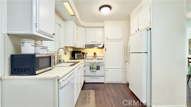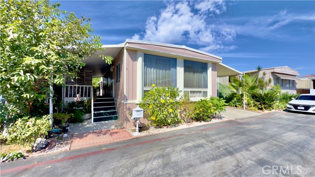 Come visit this beautiful home located in a wonderful family-friendly mobile home park! Tandem carport parking that may fit up three cars. This charming 2-bedroom, 2-bath home is move-in ready and full of upgrades, including: Interior Features • Fresh new paint throughout • Large front-facing windows that fill the home with natural light • Spacious master bedroom • Plenty of kitchen cabinet storage • Washer & dryer area conveniently located inside the home • New range hood, garbage disposal, sink, and updated outlets • Gas stove & gas dryer * Newer Roof * Large Covered Patio Area Comfort & Efficiency • 4-year-old AC/heating unit with a smart Nest-style thermostat Community Amenities • Family-friendly park with low space rent • Beautiful pool to enjoy sunny days • Clubhouse with pool table, full kitchen, restrooms and seating areas for gatherings This home combines comfort, style, and convenience—ready for its next owner to enjoy! Interior pictures to follow