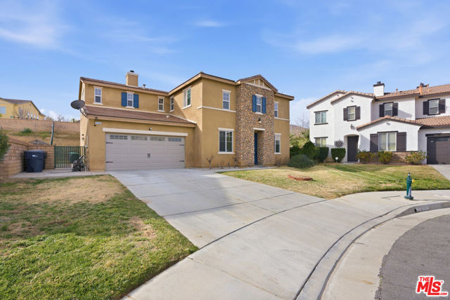 Welcome to this Ana Verde stunner in the heart of Palmdale's Antelope Valley. A spacious 4-bedroom, 3-bath home with the layout, light, and livability today's buyers are looking for. Step inside to an open, airy floor plan featuring fresh, bright interiors, recessed lighting, and a generous great room anchored by a cozy fireplace, perfect for movie nights or hosting friends. The kitchen is a true centerpiece, featuring white cabinetry, quartz countertops, stainless steel appliances, and ample prep and storage space, ready for everything from quick weekday dinners to holiday cooking. Upstairs and throughout, you'll love the abundance of natural light, clean finishes, and comfortable room sizes. The primary suite offers a relaxing retreat with an oversized bath featuring dual sinks, a separate soaking tub, and a walk-in shower, your own private retreat at the end of the day. Out back, enjoy a backyard built for entertaining: a covered patio, stylish hardscape, and plenty of room to lounge, grill, and gather under the open sky. Located near neighborhood parks, schools, and convenient shopping/dining, this Ana Verde home delivers space, comfort, and that ''this is the one'' feeling the moment you arrive.