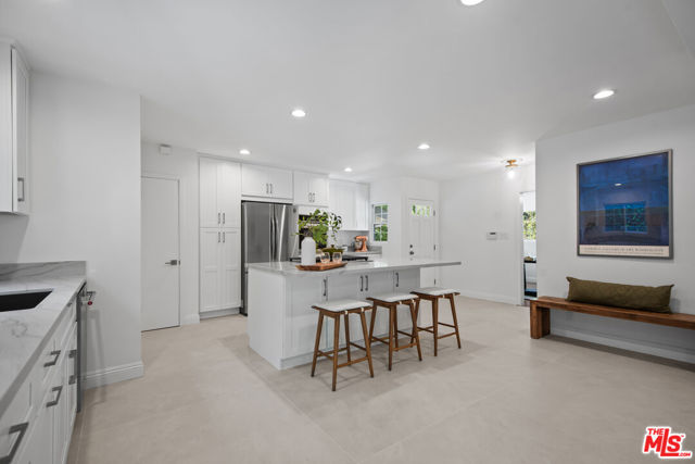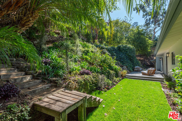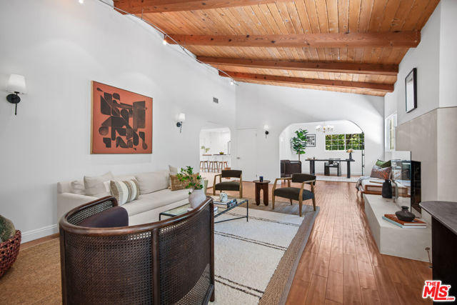 Welcome to Outpost Estates! Newly renovated three-bedroom, two-and-a-half-bath home with approximately 2,236 sq. ft. of living space on an expansive 11,600 sq. ft. lot. This home offers total serenity and privacy. The inviting living room features wood-beamed ceilings, a fireplace, and wood and Italian porcelain tile floors throughout. The newly remodeled kitchen showcases custom solid oak cabinetry, quartz countertops, top-quality appliances, large island perfect for casual dining, opening to a flexible large dining or family with access to the outdoor patio and yard. The primary suite with a remodeled bathroom featuring Italian limestone flooring, double vanities, separate tub and shower, opens directly to the lush backyard. Two additional bedrooms provide comfort and versatility and remodeled bathroom featuring modern finishes and thoughtful design. The private outdoor space includes a tranquil fountain, mature landscaping, and a grassy yard ideal for entertaining. Additional highlights include a circular driveway for easy access and a two-car garage. Move-in ready and ideally located, this home captures the best of California living in one of Los Angeles' most desirable neighborhoods. Historic Outpost Estates, this enclave is one of Los Angeles' storied neighborhoods developed in the 1920s, it is known for its architectural character, tree-lined streets, and a close-knit community feel. You're just moments from Runyon Canyon trails, the Hollywood Bowl, the Sunset Strip, and cosmopolitan shops and dining - all while enjoying a serenity and privacy rarely found so close to the city center.