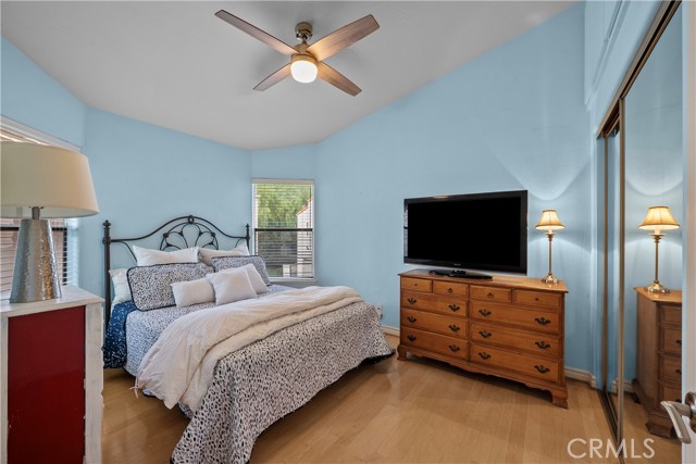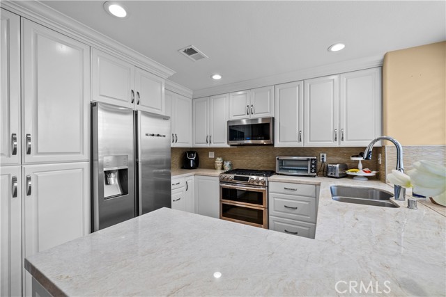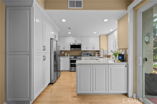 Warrantable! Welcome to this fantastic 3-bedroom, 2.5-bath END-UNIT townhome in the desirable California West community of Chatsworth, surrounded by breathtaking views of the Santa Susana Mountains. As you step inside you are welcomed to natural light filling the spacious living room, featuring high ceilings, arched windows w/plantation shutters, and beautiful stone fireplace - which flows into the dining room - perfect for entertaining in both spaces. At the heart of the home is the beautifully appointed kitchen w/custom cabinetry, elegant countertops, glass backsplash, stainless-steel appliances, INCLUDING Refrigerator, a gas range, dishwasher and deep sink. The kitchen is complemented by a large garden window overlooking the private patio. Within this space is a versatile den/family room w/recessed lighting and custom floor-to-ceiling bookcases that provides the ideal space for displaying décor, books, or creating a home office. Sliding glass doors lead to your private patio, surrounded by lush greenery. The main floor includes a convenient powder room, as well. And under the stairs is a "Harry Potter" closet ideal for extra storage or for your own creative use. Upstairs, discover a spacious primary suite w/its own fireplace, recessed lighting, ceiling fan, and Valley views, a walk-in closet w/built-in shelving, and an en-suite bathroom w/dual sinks and a shower/tub combo. Two additional bedrooms - one with a walk-in closet - both with newer ceiling fans, offers ample space for family or guests. The upstairs hallway features a full bathroom w/a walk-in shower, a laundry room w/INCLUDED WASHER/DRYER, and a hallway utility closet. The direct-access 2-car garage includes built-in storage cabinets. Nearby the townhome is plenty of guest parking and easy access to one of the 2 resort-like pools, spas, a BBQ area, inviting lounge spaces, and trails leading to the scenic 23-acre Garden of the Gods Park. Recent updates include: recessed lighting, newer ceiling fans, and newer furnace (2022). The HOA covers exterior common area maintenance, water, and earthquake insurance. Conveniently located off the 118 freeway at Topanga Canyon, the Cal West Community offers easy access to the Vineyards shopping plaza, Boeckmann Park, shopping, dining, and other conveniences, blending comfort and accessibility and a wonderful place to call home!