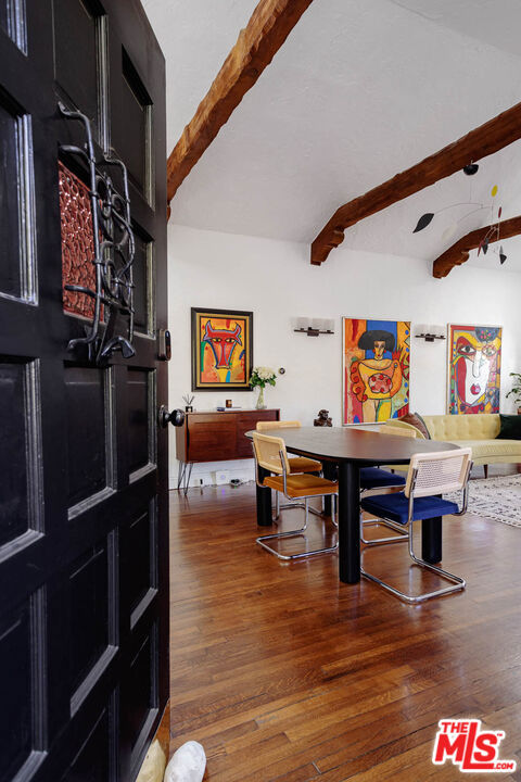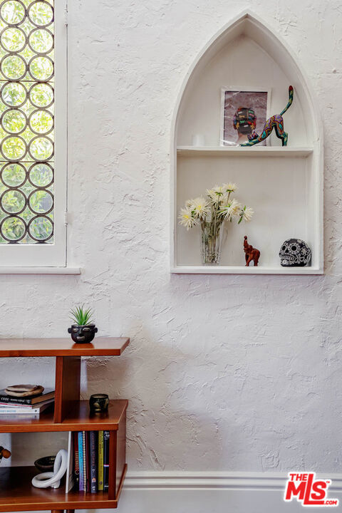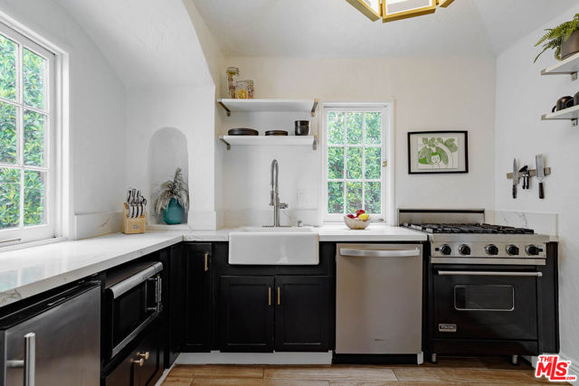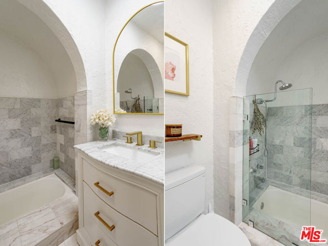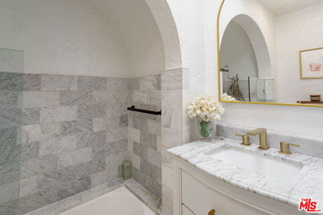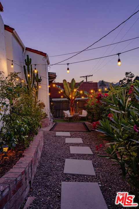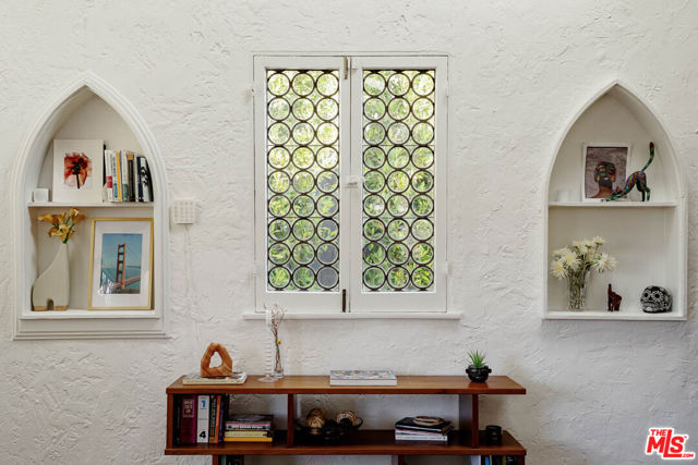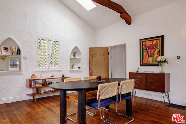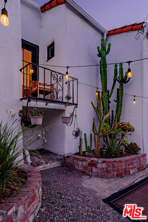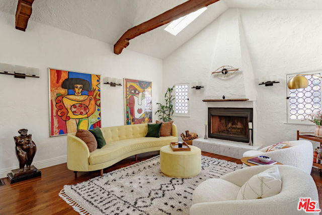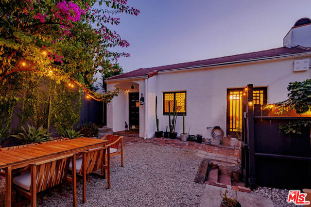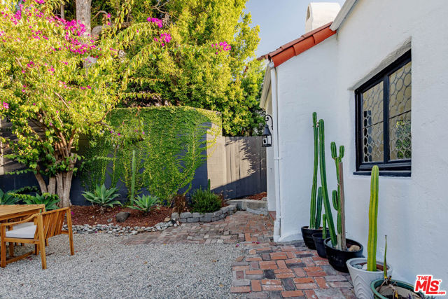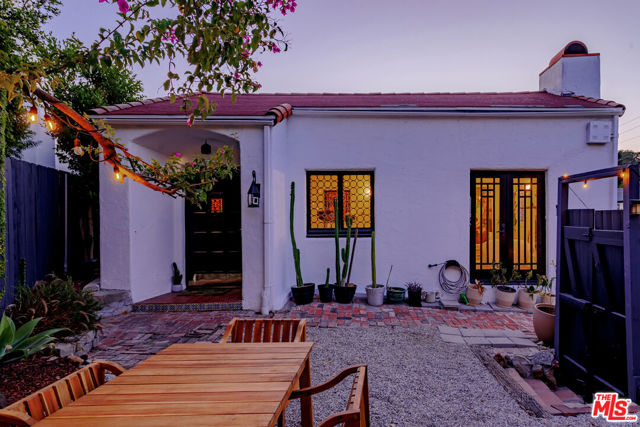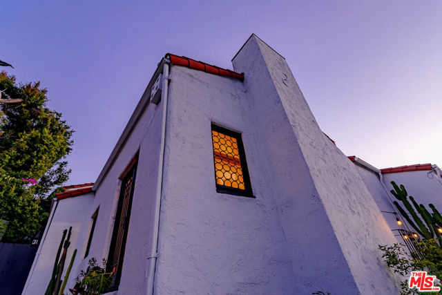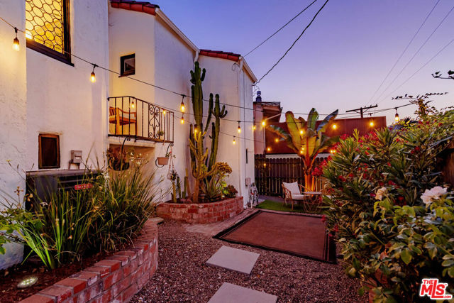 Welcome to "Casa Casablanca", a 1920s Spanish cottage that transcends time high above the boulevard in Whitley Heights, steps from the Hollywood Bowl. This masterpiece was meticulously designed by Oscar-winning art director Carl Jules Weyl, famed for bringing cinematic masterpieces like "Robin Hood" and "Casablanca" to life. This 2-bedroom, 2-bathroom treasure offers a blend of historical elegance and modern convenience. As you step in through a gated courtyard patio, inviting manicured grounds welcome you to this stunning Spanish cottage. Inside, vaulted beamed ceilings soar above intimate spaces, casting light through whimsical bottle glass stained windows, skylights, and archways. The 1,133-square-foot interior features exquisite details, including built ins, moldings, and a sunken bathtub that invites relaxation. Open the balcony doors to enjoy a breath of tranquility overlooking the lush lower yard, your personal retreat amidst the vibrant city life. This home offers essential modern amenities like air conditioning, washer/dryer, Bosch refrigerator & dishwasher, Viking stove, and two remodeled bathrooms. The residence's multiple private outdoor spaces offers the perfect canvas for your personal touch with views of the hills. Located in the heart of Hollywood in Whitley Heights, you are walking distance to the iconic Hollywood Bowl and a stroll up to the Hollywood Reservoir. Bordering Hollywood Dell, this location is accessible to the best Hollywood has to offer with convenient freeway access. Peekaboo views of the Hollywood Sign are visible from the front door. This property offers plenty of permitted street parking in front of the property.
