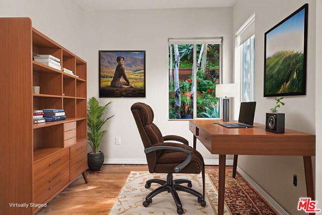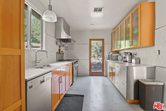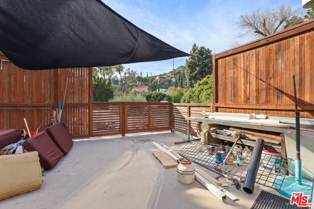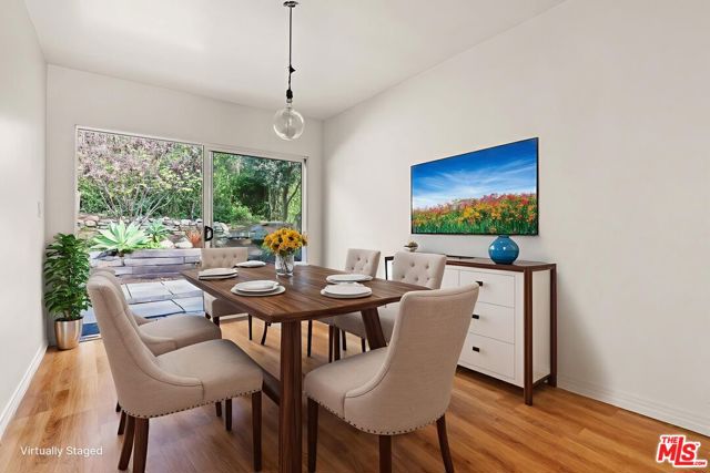 Quintessential Mid-century home with an amazing front porch in a private and peaceful setting at the top of a cul de sac in the coveted Hollywood Dell, the iconic 1920's neighborhood known for its unique architecture, majestic trees, peaceful atmosphere and central location. The home is blessed with natural light and an energizing aesthetic. Large living room and formal dining room with gorgeous hardwood floors in open concept floor plan. Spacious kitchen has industrial flair and a tremendous amount of counter space as well as large pantry and laundry room. Both the formal dining room and the kitchen open to the expansive backyard area. The home is 2 bedrooms and 2-bathrooms, 2nd bedroom could be used as an office; both bedrooms are en suite. Primary bath features a 15 sq.ft. walk-in shower with Kohler steam unit and separate bathtub. The aesthetic interior space, the ample and landscaped grounds, and the magical stetting that feels miles away from it all while being conveniently located to everything good in Los Angeles make this a truly exceptional offering. A Hilltop gazebo overlooks the backyard and the quiet cul-de-sac towards the hills deeper in the Dell. Beautiful and extremely walkable neighborhood with lots of history and wildlife. Nature trails up to, and around, the Hollywood reservoir, or a short jaunt into central Hollywood or the Hollywood Bowl. Fantastic opportunity and difficult to duplicate acquisition.