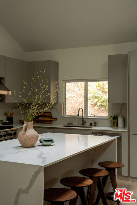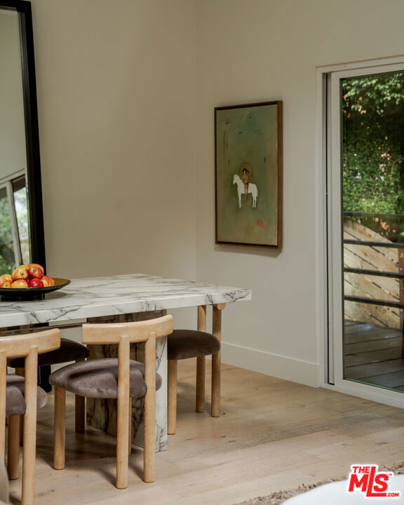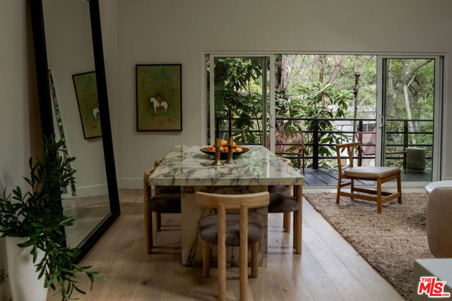Tucked within a serene, tree-lined enclave, this fully reimagined 3-bedroom, 3-bath retreat perfectly balances design, privacy, and nature. Behind a gated driveway, the home feels worlds away while remaining moments from both the city and the valley. Soaring vaulted ceilings, wide-plank hardwood floors, and skylights create a luminous open layout that flows effortlessly from the living and dining areas to an expansive wraparound deck, ideal for entertaining or unwinding beneath the trees. The chef's kitchen showcases bespoke cabinetry, top-tier appliances, and a charming breakfast nook overlooking lush surroundings. The light-filled primary suite features a spa-inspired bath with dual sinks, a walk-in closet, and direct access to the deck. Downstairs, a spacious bonus suite with a full bath and closet offers versatility for a guest suite, home office, or creative studio. Surrounded by mature landscaping and multiple outdoor living spaces, this turnkey property delivers a rare sense of calm and connection to nature, just moments from the acclaimed Wonderland School and the best of city living.
