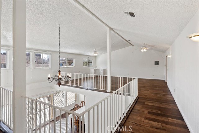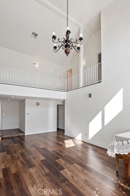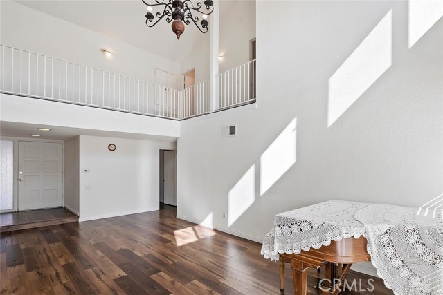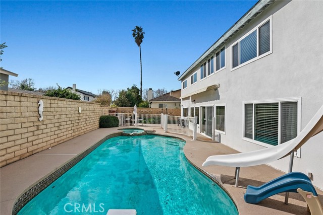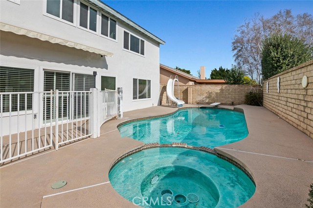 Awesome floor plan. The entry opens to the living room with high vaulted ceilings. There is plenty of natural sun light coming though the clear light windows and sliding glass door that leads to the maintenance free back yard. This bright and light home offers 2,662 square feet of living space but it just plain feels so much bigger. The first level has 3 bedrooms, 2 full bathrooms with 2 additional bedrooms and a full bathroom on the second level. 5 bedrooms 3 bathrooms total! With a little bit of updating your clients can make this beautiful house their home. The second level has an fun and spacious bonus/game room that overlooks the living room. This home is perfect for entertaining family and friends because it has plenty of room for the both friends and family. The back yard has a pool and spa perfect for those summer nights in Valencia. A little bit of imagination and TLC can go a long way. Solar installed and new wood floor Photo is available on 2/13