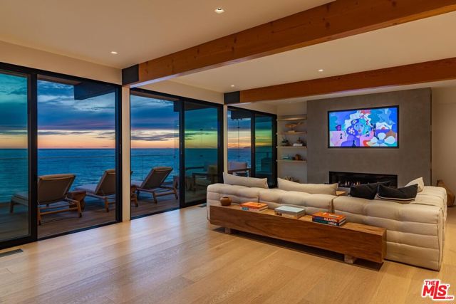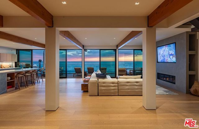 Fully remodeled in 2021, this oceanfront residence is set along a coveted sandy stretch of Malibu Road, offering the ultimate coastal lifestyle. Designed for effortless entertaining, the home is entered through a private courtyard into an expansive great room featuring a fireplace and a high-end chef's kitchen, all oriented toward sweeping ocean views. The entire second level is dedicated to the serene primary suite, complete with floor-to-ceiling sliders framing panoramic views from every angle - including the spa-like bath with a two-person shower and soaking tub. A secondary suite is conveniently located on the main level, ideal for guests. Additional highlights include a three-car garage and a generous driveway providing ample parking. Seller has fully permitted architectural plans to convert the downstairs suite into two bedrooms each with their own bathroom.