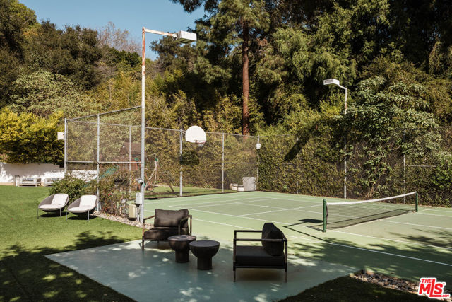 Nestled just above Sunset in prestigious Lower Bel-Air, this gated 1.43-acre estate offers an unparalleled blend of privacy, space, and breathtaking views. This rare compound is a secluded oasis surrounded by lush mature trees and expansive grassy grounds. Designed for those who appreciate both style and serenity, this Mid-Century masterpiece exudes effortless sophistication, reminiscent of Frank Sinatra's iconic era. Walls of glass frame panoramic vistas stretching from the ocean and Catalina to the marina and glittering city lights. An entertainer's dream, the estate boasts a sun-drenched pool, paddle tennis court, and a state-of-the-art gym/pool cabana, all designed for ultimate relaxation and recreation. With ample off-street parking for 20+ cars, this property is primed for hosting on a grand scale. A rare opportunity to own a pristine property in Bel-Air, where luxury, exclusivity, and timeless design converge.