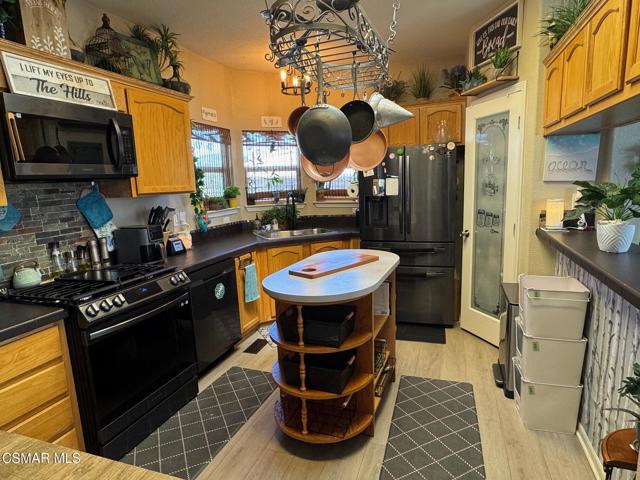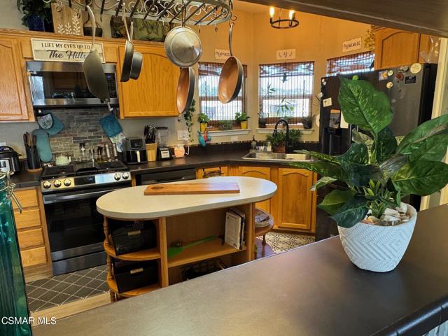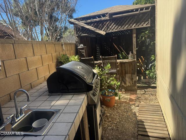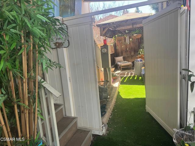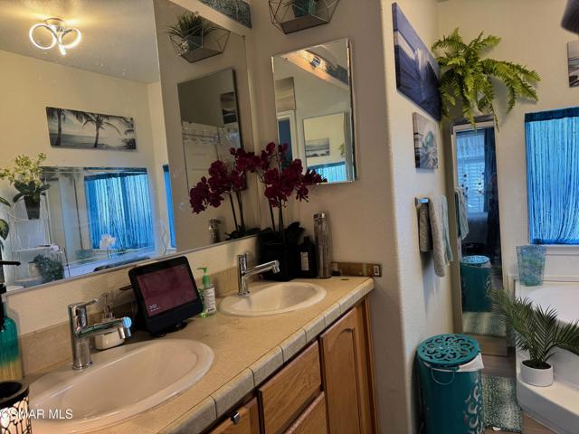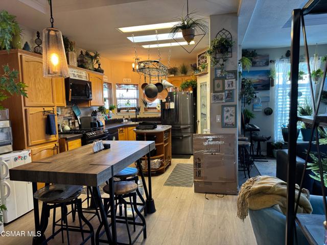 Nicely upgraded 3 bed 2 bath home in prime location of Mission Mobile Manor, a 55+community! High ceilings inside with fans and spacious Living room ! Most windows have plantation shutters. Laminate wood flooring throughout! Large kitchen with island offers gas stove, microwave, dishwasher, pantry, pot rack and skylights! Indoor laundry with extra cabinets. Master suite has double sinks in bath, roman tub and separate shower! Most of furniture is included along with 2 ring doorbells! 2 car covered carport, storage shed, gazebo and BBQ in back. Community offers a pool and clubhouse and room for parties/events! Must See!
