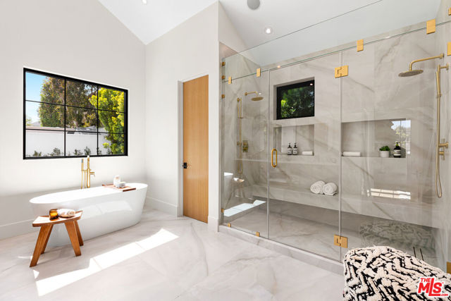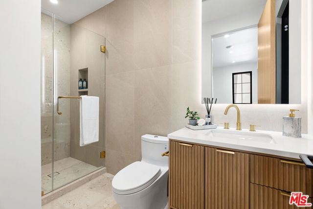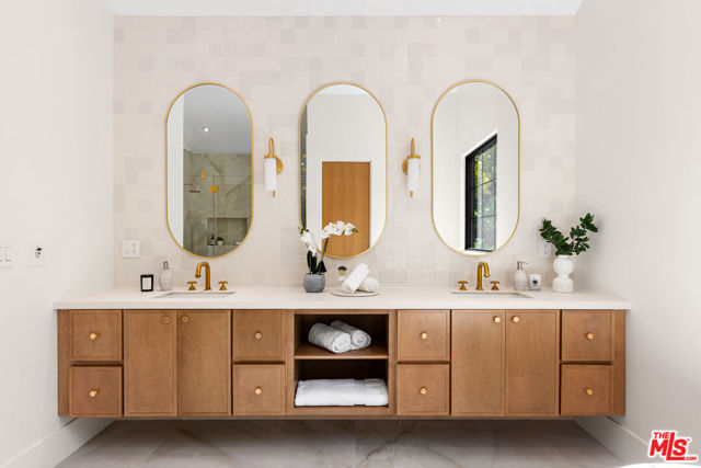 Prepare to be enchanted by one of the most beautiful homes ever built in CHEVIOT HILLS. The open concept of this meticulously crafted new construction, a vision of harmony and design creates a beautiful feeling with abundance of light, high ceilings, and a soothing and seamless transition to the outdoors perfect for entertaining. The main floor features a formal living room, and dining room, an expansive gourmet chef's kitchen showcases high-end fixtures, top-of-the-line Monogram appliances, an oversized waterfall island adjacent to a spacious family room. An en-suite bedroom is conveniently located on the main floor. Upstairs deluxe landing serves as a retreat branching off to 4 bedrooms with ensuite baths, with the primary bedroom featuring large walk-in closet and a luxurious bathroom with a freestanding soaking tub. Massive basement with a theater room , Bar fridge, and Two Bedrooms. This home is equipped with Lutron home system, allowing you to set your home to your comfort standards with a touch of a button. Water conserving landscaping, pool/spa and an incredible waterfall providing an escape from the bustling city and an opportunity to soak up the serenity. No expense has been spared on this home, finished with exquisite and high-quality details and finishes throughout. Truly a rare find in a highly desirable location.