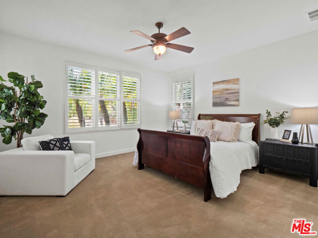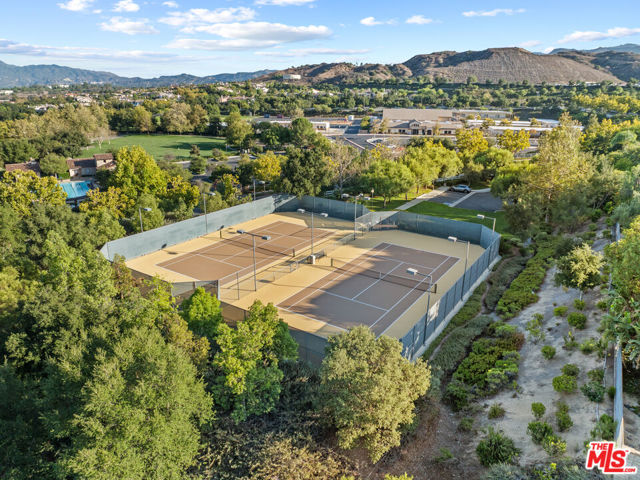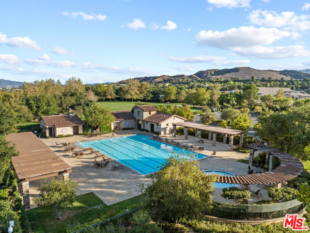 Breathtaking Gated Westridge Home with 4 Bedrooms, 2.5 Baths, Loft that is currently a billiards room, Downstairs Luxurious Primary Suite, a 3-Car Garage, and No Mello-Roos Taxes! This beautifully maintained home features exceptional curb appeal, an inviting front porch, and a spacious, light-filled floor plan. Step into the formal living room adorned with a charming stone fireplace and decorative glass accents, flowing into a generous formal dining area with built-in storage and a butler's pantry. The family room boasts soaring windows and opens to the chef's center island kitchen, complete with abundant counter space, built-in Sub-Zero refrigerator, upgraded commercial-grade range, stainless steel appliances, and ample cabinetry. The luxurious primary suite offers a spa-inspired en-suite bathroom with dual vanities, a large jetted soaking tub, an upgraded glass-enclosed walk-in shower, and a massive walk-in closet with custom organizers. A guest powder room and a well-equipped laundry room with utility sink and additional storage complete the first level. Upstairs, the grand staircase leads to a spacious loft currently used as a billiard's room and three additional bedrooms, two share a well-appointed Jack-and-Jill bathroom with dual sinks. Step outside to enjoy the lushly landscaped yard, featuring a large grassy area, covered pergola patio, and built-in cooking station which is perfect for entertaining. Located in a gated community of luxurious homes, residents enjoy access to resort-style amenities including a clubhouse, two swimming pools, tennis courts, sports courts and in close proximity to award-winning schools (Oak Hills Elementary, Rancho Pico Junior High, and West Ranch High School). Centrally located minutes from freeway, shopping and restaurants. Don't miss the opportunity to own this exceptional home in one of Westridge's most desirable communities!