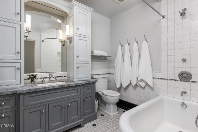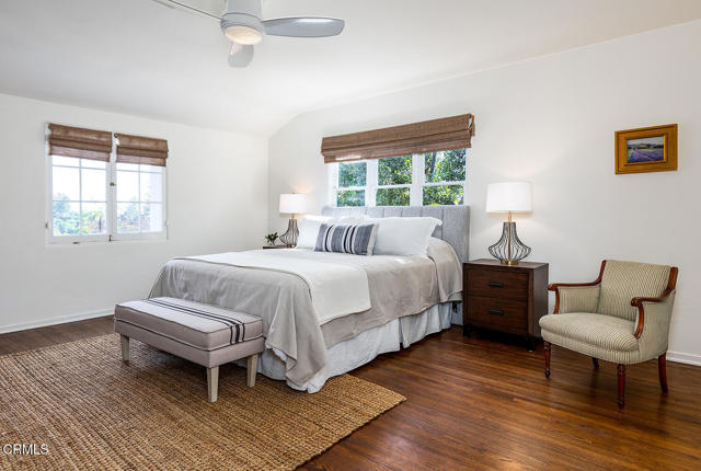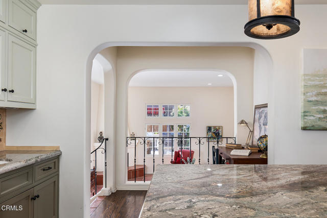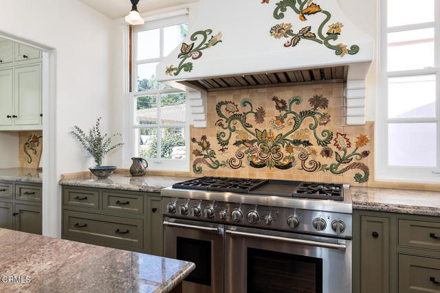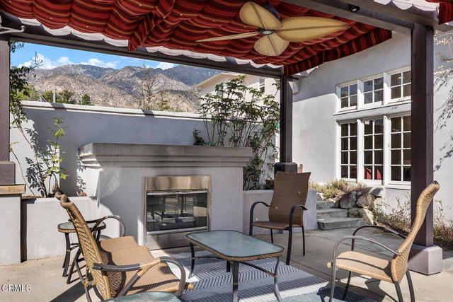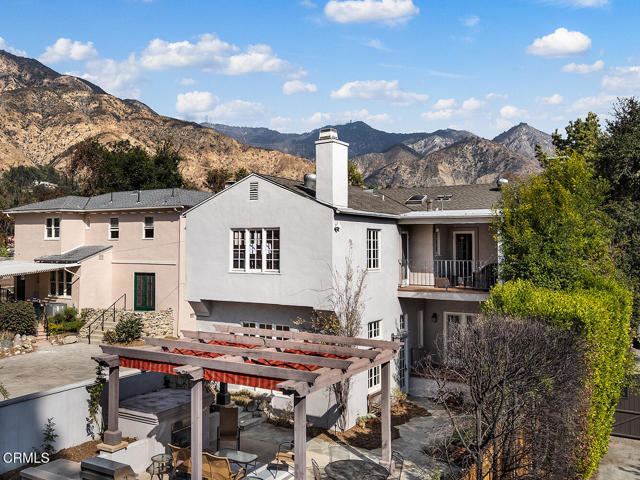 This elegant 1932 colonial on Altadena's Boulder Road is a gem. Preserved architectural elements like hand-troweled stucco, classic brick work and symmetrical facade with large windows provide curb appeal and a welcoming presence. The property is anchored by the street's eponymous granite boulders and handsome curving stone front path around a native grass meadow, with a quiet front patio just beyond a sculptural Redbud tree. A generous paneled wood front door opens to reveal rich oak hardwood floor and plaster walls; the quality and craftsmanship here would be impossible to duplicate in 2025. Comprising over 3000 ft, this 4 bedroom, 3 bath home features hand-finished coved ceilings and flattened arches throughout the public rooms. On the south of the ground floor, a grand living room offers a generous decorative fireplace, casement windows, and French doors opening to the backyard. To the north, the formal dining room with bay window and built-in cabinetry. Both the dining and living rooms connect to the home's generous designer kitchen, featuring custom cabinetry, incredible artisan tilework that elevates the every day to the extraordinary. Rich stone countertops, Shaws farmhouse sink, top-of-the-line fixtures and stainless steel appliances, are a chef's dream. A convenient powder room and pantry provide access to the driveway for quick unloading and easy entertaining. Past the kitchen office niche, down a few steps find a spacious family room with soaring ceilings, walls of windows, a second fireplace and access to the backyard. A fabulous bonus: sprawling basement with pantry and storage is just steps down from the family room. Bedrooms and private spaces can be found on the second floor, up a terracotta-hued magnesite floor staircase, a piece of craftsmanship to be cherished. Four bedrooms enjoy natural light, views and ample closet space. The large primary suite offers incredible mountain views, a full ensuite bath, with soaking tub and direct access to balcony overlooking the backyard. Another stylish full bath boasting custom tile work, stone countertops, and skylight, and the windowed laundry room with its own sink complete the upper level. Outside, the entertainer's backyard is fenced with a covered outdoor kitchen and dining patio space and backyard punctuated by more spectacular granite boulders. Incredible mountain views, proximity to beloved local spots...this is a rare opportunity to own a piece of historic architecture in the foothills.