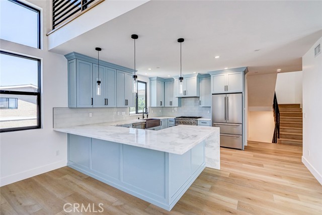 Welcome to 2604 Grant Ave #B, Redondo Beach — a beautifully crafted, modern coastal home offering style, comfort, and smart living. This newly constructed residence is one of three luxury townhomes designed with thoughtful features and high-end finishes throughout. Unit B stands out with its, stained exposed beams, vaulted ceilings, as well as a mezzanine giving it a spacious, airy feel. Inside, you’ll find scratch-resistant and waterproof flooring throughout — ideal for families, pets, and carefree living. The open-concept kitchen boasts under-cabinet lighting, a farmhouse sink, gas stove and oven, microwave, dishwasher, refrigerator, and a sleek electric exhaust hood. Custom touches like backlit crown molding, a chandelier over the staircase, and mirrors pre-installed in every bathroom elevate the interior aesthetic. The primary suite features a large ceiling fan, Jack and Jill sinks, a standalone soaking tub, and a luxurious rain shower head. Every bedroom is pre-wired for wall-mounted TVs and ceiling fan installation, while the home is climate-controlled with a Nest thermostat system connected via WiFi for seamless temperature management. Enjoy cozy nights with a remote-start gas fireplace and entertainment-ready spaces including an installed large flat-screen TV. The roof deck is fully prepped with gas lines, sink, and electrical for a future grill or firepit, making it the perfect spot for sunset gatherings. This unit includes a 2-car garage plus additional covered parking, Ring camera system, EV charger-ready outlet, automatic garage door opener, and dedicated washer/dryer room ready for your appliances. The property also offers a sump pump with backup, gas water heater, fire sprinkler system, and comprehensive smoke and carbon monoxide detectors for peace of mind. Outside, you’ll find automatic driveway lighting, with turf inserts for curb appeal, drip and sprinkler systems with separate timers and bells, exterior electrical plugs, and minimized HOA fees thanks to efficient planning. Located in desirable North Redondo Beach, close to shops, restaurants, parks, and just minutes from the beach — 2604 Grant Ave #B is more than a home, it's a lifestyle. Don't miss this opportunity to own a turn-key modern masterpiece in one of the South Bay’s most sought-after neighborhoods!