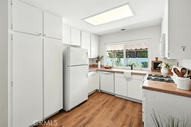 Located in the guard-gated 55+ community of Friendly Valley, this charming single-story 2-bedroom home is a rare find featuring one of the few attached 2-car garages in the community. Freshly updated with new flooring, interior paint, light fixtures, and dual pane vinyl windows and slider, this home has a bright, move-in-ready feel. Perfectly situated with no neighbors in front, you will enjoy a wonderful sense of space and privacy, and the large slider, kitchen window, and primary bedroom all overlook a private backyard with a covered patio. Beyond your front door, Friendly Valley delivers an exceptional lifestyle with two golf courses, a large community pool and spa, a recreation center, lawn bowling, and RV parking for a low yearly fee. Homes like this do not come along often in this beloved Santa Clarita community. Spectrum Cable, trash, outside water, and common area gardening are included in the HOA dues. Some pictures have been virtually staged.