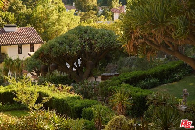 Perched above the treetops on one of Los Feliz's most storied streets, is a rare architectural gem a 1922 Spanish estate with major celebrity provenance, set behind gates on nearly 1.5 acres of exquisitely landscaped grounds. A once-in-a-lifetime offering, this grandly scaled and deeply soulful home beautifully balances preserved period detail with refined interior updates by Los Angeles-based design studio, Commune Design. Inside, soaring original beams and hand-painted ceilings crown a series of awe-inspiring public rooms, each filled with natural light and seamlessly opening to the home's expansive patios and terraces. A glamorous den/media room, richly paneled card room, and en-suite guest bedroom complete the main level. The updated eat-in kitchen, stylishly reimagined, opens to a private outdoor dining patio tucked into the garden. Upstairs, the sunlit primary suite includes a newly renovated period-appropriate bath, generous dressing area, and a balcony overlooking the verdant hillside. A second upstairs suite, also with a newer bath, enjoys tranquil garden views. The resort-like grounds are a world of their own, with a freeform pool, cold plunge, amphitheater, outdoor fireplace, scenic fire pit, and meandering water features cascading toward a koi pond. Multiple patios, flat pads, and hidden garden paths invite entertaining or quiet retreat, all surrounded by lush plantings and sweeping views that stretch across the city. Rich in character, history, and magic, 2666 Aberdeen Avenue is a truly exceptional Los Feliz estate timeless, transportive, and unforgettable.