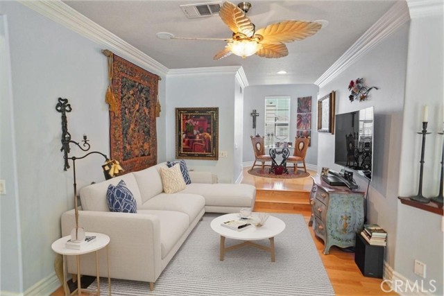 Elegant Luxury Lifestyle. 3 Bedroom 4 Bath Townhome located in the Prestigious Gated Avignon community in Valencia. NO MELLO ROOS! Location, Location, Location backs to the Valencia Country Club Golf Course, starting with an amazing view of the 17th Fairway. A Large wrap around patio/yard invites relaxation to sip your favorite beverage while watching the golfers from seclusion. Take a stroll to shopping, restaurants, coffee shops and nearby amenities. The Private rec center with pool/spa and outdoor gardens is a short walk away. The Dramatic Entry welcomes you into a home filled with luxury finishes. The Living Room features recessed lights and is open to the Dining Room. Dining Room ceiling soars two stories and offers lots of natural light from multiple windows and sliding doors with direct access to the patio and yard. An adjacent Butler’s Pantry provides wine refrigerators as well as control panel for whole house and patio sound system. Combined Gourmet Kitchen/family room includes ceiling beams, fireplace, eye level 65” curved TV, granite counters, subzero refrigerator, gas range, double ovens (one convection) an abundance of cabinets, pots and pans rack, walk-in pantry with prep sink. First Floor Primary Bedroom Suite features a unique entrance with inlaid mosaic tile, has a raised hearth fireplace and spacious custom walk-in closet. Primary Bathroom has an expansive dual sink vanity, walk-in shower, and soaking tub. Guest Powder Room also located on the First Floor highlights sound dampening sunbrella fabric walls. On the 2nd floor, the Loft/Bonus Area features a custom built library plus a Rotunda sitting area that can be used in so many ways. Upstairs Bedroom Two with ceiling fan and walk-in closet also has a full en-suite bathroom. Upstairs Bedroom Three, used as an Office by the current owner, features wood flooring, ceiling fan and walk-in closet. Entertainer’s backyard displays a large covered patio, lush landscaping, outdoor kitchen, Pond and Golf Course View! Installed in the Two car garage are 220v car charging station and washer and dryer hookups. Upscale Amenities Galore: Travertine, crown molding, wainscoting, wrought iron railings, upgraded chandeliers, built-ins, whole house water filtration system, central vacuum, and more. Contact your agent to schedule a showing before it's gone.