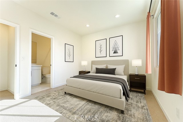 Spectacular tri-level townhome is located in the highly desirable Bonita Village Community of Pomona, bordering Claremont and Montclair. Built in 2017 by Beazer Homes spans 1,654 sq. ft. of modern living space with 3 bedrooms, 3.5 baths, 2 private balconies, and an attached 2-car garage where every bedroom includes private full bath. A standout feature is the main-level jr. suite w/full bath en-suite is perfect for guests, multi-generational living, home office, or any creative use you see fit. The open-concept floor plan blends style, comfort, and functionality, making this home ideal for a wide variety of lifestyles. This modern, move-in-ready home comes equipped with custom roman shades treatments throughout, ceiling fans in every room, ring doorbell, custom pull out organizers in kitchen, and much more. The Property includes monthly association dues and appliances: (two refrigerators, and washer/dryer units). Centrally located, and only minutes from the I-210, I-60 and I-10 freeways. Plenty of shopping and dining experiences, and in close proximity to Pomona and Claremont educational institutes.