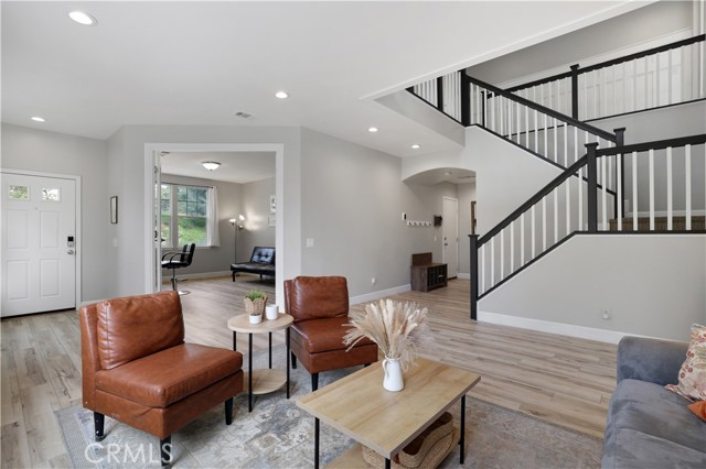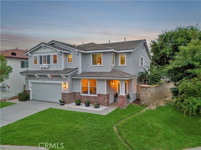 This immaculate North Lake STUNNER has been beautifully updated and sits on a corner lot in a welcoming cul-de-sac street with OWNED SOLAR! It can also be sold almost fully FURNISHED! The exterior of the home has just been freshly painted and boasts nearly 3,000 sf of light and bright living space featuring 4 bedrooms, 3 FULL bathrooms, a bonus room/office, loft, office nook, and 3 car tandem-garage. You have a downstairs bonus room/office with glass French doors currently used as a salon with its own sink and could easily be converted to a 5th bedroom, which would be convenient with a full bathroom downstairs. The living room flows seamlessly into your open concept kitchen which opens up to the separate family room featuring beautiful built-in shelving and a fireplace adding the perfect touch to the home's coziness and comfort. Your kitchen features granite countertops, a center island, elegant two-tone cabinetry with champagne bronze hardware, a gas stovetop, range hood, microwave, oven, pantry, and a stainless steel fridge included in the sale. Head upstairs where you have a spacious loft with ceiling projector and screen, a dedicated office nook, laundry room, all 4 bedrooms, and 2 more full bathrooms. Your primary suite has high ceilings, a BALCONY to soak in beautiful sunset views, and double barn doors to a very spacious bathroom with a remodeled walk-in shower, soaking tub, spacious walk-in closet, and double sink vanity with separate make-up station. Your laundry room is conveniently located upstairs with its own sink and washer/dryer included. Your backyard features a covered patio, plenty of grass, a playground, spacious side yard, and views! The HOA amenities include a clubhouse, swimming pool and spa, basketball court, picnic area, playground, and large grass field. Also nearby is the renowned Castaic Lake, Castaic Sports Complex, Castaic Aquatic Center, and plenty of restaurants, strip malls, and award-winning schools. Schedule your showing to see this rare gem before it's gone!