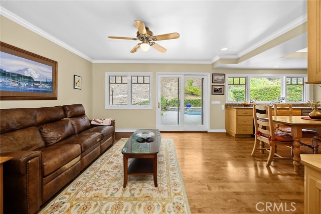 Experience refined living at 2803 Willowhaven Dr., a beautifully maintained Mid-Century split-level home nestled in the foothills of La Crescenta. This sophisticated residence blends timeless architecture with modern comfort. The bright, open interior welcomes you with an elegant flow from the family room into the remodeled kitchen, featuring custom cabinetry, crown molding, recessed lighting, updated appliances, and a walk-in pantry. The step-down living room offers a cozy fireplace, plantation shutters, and an intimate dining area, perfect for gathering with loved ones. Upstairs, the spacious primary suite and two additional bedrooms provide comfort and privacy, complemented by a stylishly updated hall bath. Downstairs, a private suite with a walk-in closet and full bath is ideal for guests or multigenerational living. Enjoy ample storage, a 2 car attached garage, central A/C, dual pane windows, remodeled bathrooms, a newer roof (2021), and breathtaking mountain views. Step outside to a lush backyard retreat with a sparkling pool, perfect for relaxing or entertaining. Conveniently located near parks, shopping, and award winning La Crescenta schools, this move-in-ready gem offers the perfect balance of elegance, functionality, and location. Don’t miss your chance to own this timeless classic.