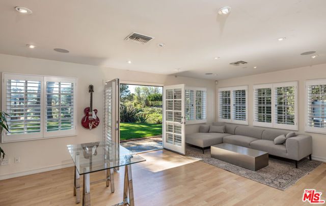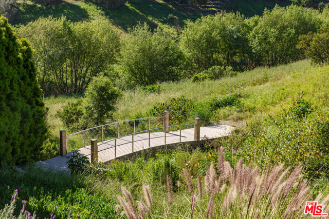 Exceptional Point Dume property on over 1.64 acres of private, scenic grounds, complete with coveted Riviera II beach key access. Set behind private entry doors, this beautifully maintained ranch-style home offers a rare combination of privacy, space, and effortless Malibu living. The thoughtfully designed floor plan features a chef's kitchen with six-burner range and grill, Sub-Zero refrigerator, Miele dishwasher, large island, and walk-in pantry. The dining area and spacious living room open seamlessly through double French doors to multiple outdoor entertaining areas, creating an ideal indoor-outdoor flow. The east wing includes three bedrooms, while the west wing is dedicated to a private primary suite with a large walk-in closet and its own secluded outdoor patio. Designed for both everyday living and entertaining, the property features expansive grounds, multiple outdoor dining spaces, and a pergola-covered fire pit overlooking a scenic gulley. A recently completed, fully permitted, drivable bridge over the seasonal stream seamlessly connects and maximizes usability across the entire property. Dual driveways provide ample parking, and the spacious garage, currently outfitted as a gym, includes built-in media and generous storage. The property also includes architectural design development plans for a future estate exceeding 10,000 square feet, along with completed geology, soils, archaeological, and biological studies, offering significant upside potential. Ideally located near Point Dume Village, with easy golf cart access to local dining, shopping, and world-class beaches. A rare opportunity to own a private sanctuary with beach key in one of Malibu's most sought-after neighborhoods.