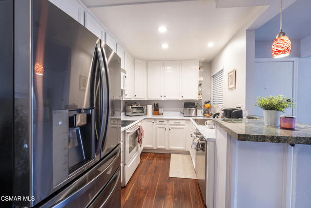 Welcome to this beautiful condo for sale in the heart of Agoura Hills, offering a prime central location close to popular dining, shopping, award-winning schools, and scenic hiking and biking trails. Just approximately 12 miles from the breathtaking Malibu beaches, this home combines convenience with a desirable Southern California lifestyle. The condo features wood-like flooring throughout and an upgraded kitchen with stainless steel dishwasher, a newer faucet with mounted water filtration system, and freshly painted cabinets. Major systems have been updated, including a newer wall heater, air conditioning unit, and water heater. The spacious one-bedroom floor plan includes a walk-in closet with built-in cabinetry for added storage. Enjoy indoor-outdoor living with a large private patio accessible from the living room, perfect for relaxing or entertaining. The unit is ideally located near the community's gated pool, spa, and laundry facilities. HOA dues include water, gas, trash, sewer, and landscaping, offering excellent value. This gated community also provides two assigned parking spaces, one covered carport space and one uncovered. Don't miss this opportunity to own a move-in ready Agoura Hills condominium in a highly sought-after location--come see it and make it your own.