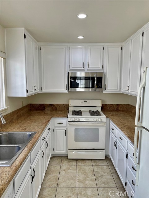 Remodeled 2-bedroom end-unit townhouse in the gated Springwood community. The entire unit features modern luxury vinyl flooring. Kitchen has been updated with modern amenities, such as LED ceiling lights, granite countertop, stainless over-the-range microwave, dishwasher, and refrigerator. Living room is spacious, bright with extra windows and a cozy fireplace, while dining area is illuminated with contemporary LED pendant light. Primary bedroom on top floor is generously sized, featuring a fireplace, a sitting area, and a walk-in closet. En-suite bathroom offers a tub, a double sink vanity, and ample closet space. Ground floor includes direct access two-car garage and laundry area, complete with a washer and dryer provided as-is. The community features a resort-style pool and spa, providing a relaxing oasis. Conveniently located in the heart of Torrance, the property is close to parks, shopping centers, dining options, and schools. The refrigerator, washer, and dryer are provided as-is, which the landlord will not maintain, repair, or replace. Pets are not allowed on the property.