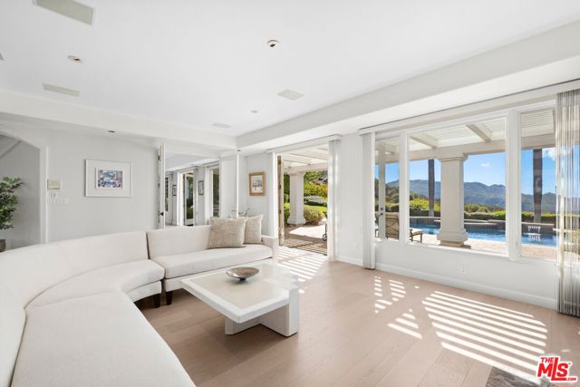 Privately positioned at the end of a peaceful cul-de-sac within the prestigious guard-gated enclave of Mountain Park Estates, this remarkable 1.3-acre property enjoys unobstructed views of the Santa Monica Mountains and borders 120 acres of permanently protected open space. Designed and lovingly maintained by its original owners, the residence offers grand, light-filled interiors with soaring ceilings and a seamless connection to the outdoors. The chef's kitchen features a 4' x 8' island, top-tier appliances, and a breakfast nook oriented toward the pool and mountain backdrop. The luxurious primary suite includes a sitting area with fireplace, a private balcony, and sweeping sunset views across the canyons. Recent enhancements include elegant hardwood flooring installed in 2021 and a new HVAC system with complete ductwork replacement in 2024. The outdoor spaces are ideal for entertaining, showcasing a resort-style pool and spa, multiple lounging terraces, and ample room to accommodate a future guest house. Residents of Mountain Park Estates enjoy access to a private community park with tennis and pickleball courts, a putting green, bocce and shuffleboard, playgrounds, and direct access to scenic hiking trails. Located in the award-winning Las Virgenes Unified School District, this timeless Calabasas estate offers a rare combination of beauty, privacy, and enduring quality.