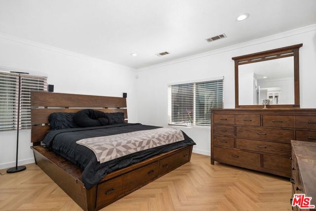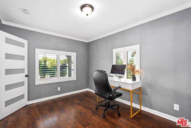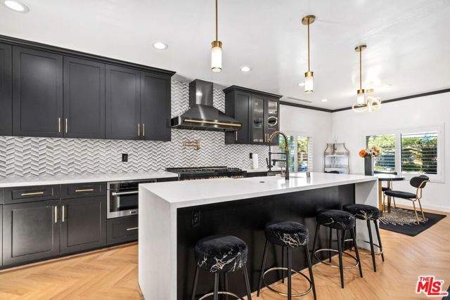 Welcome to this tastefully remodeled three-bedroom, three-bath home perfectly situated in a location near Inglewood's hottest attractions within minutes from SoFi Stadium, the Kia Forum, Intuit Dome, and LAX. Blending modern updates with timeless character, this home offers a bright, open layout ideal for both relaxation and entertaining. The spacious living and dining area connects seamlessly to the chef's kitchen, featuring a generous island with a farmhouse sink, quartz countertops, sleek cabinetry, Z-Line appliances, a walk-in pantry, and beautiful White Oak herringbone flooring. The primary suite provides a private, sunlit escape with a roomy closet and a spa-inspired bathroom showcasing a rainfall shower and stylish chrome accents. Additional highlights include central air and heat, dual-pane windows, solar panels, crown molding, plantation shutters, a newer roof, and a detached finished garage with ADU potential, perfect for an office or studio. Set on a nearly 7,000 sq. ft. lot, the expansive backyard offers lush greenery and ample space for outdoor gatherings. Don't miss this opportunity to purchase a standout home in a premier location.