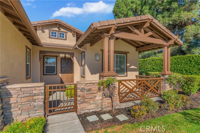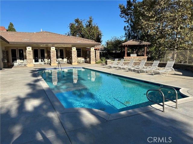 Beautiful Home in Exclusive 55+ Community. Welcome to this meticulously maintained 3-bedroom, 2-bath home offering comfort, convenience, and an active lifestyle. Enjoy 1,673 square feet of comfortable and inviting single-level living in a sought-after 55+ community. The open floor plan features a bright great room with a cozy gas fireplace, built-in entertainment center, high ceilings, and a sliding glass door that opens to a private, fully landscaped backyard. The kitchen flows seamlessly into the great room and includes built-in appliances—ideal for entertaining or everyday living. The spacious primary suite offers a private bath with dual sinks and a large walk-in closet. Recent improvements include fresh interior and exterior paint, new laminate flooring throughout, and new blinds. Enjoy outdoor living on the inviting front porch or beneath the Alumawood patio cover in the peaceful backyard. Additional highlights include recessed lights, a tile roof and an attached two-car garage. Residents enjoy resort-style amenities including a clubhouse, pool, spa, BBQ and picnic area, and community garden. Conveniently located near the Walnut Senior Center, Library, shopping, and restaurants.