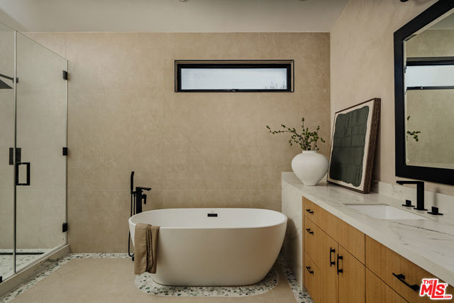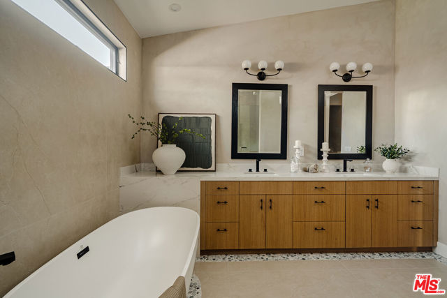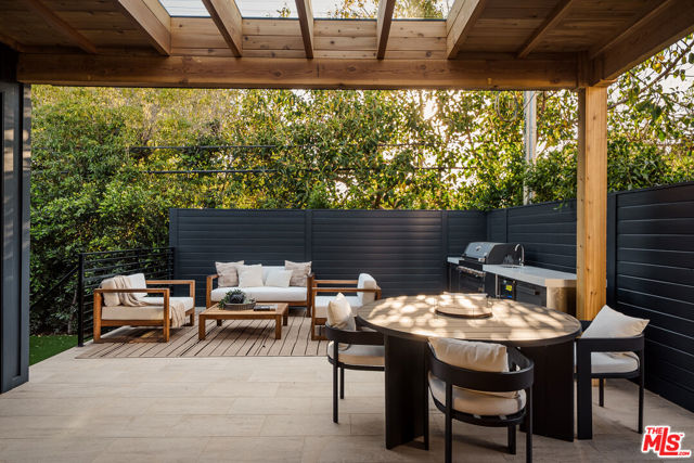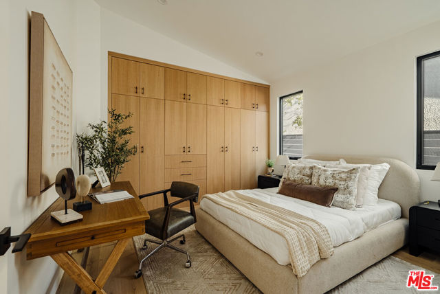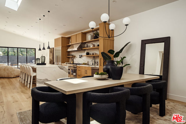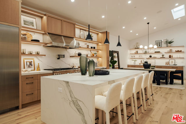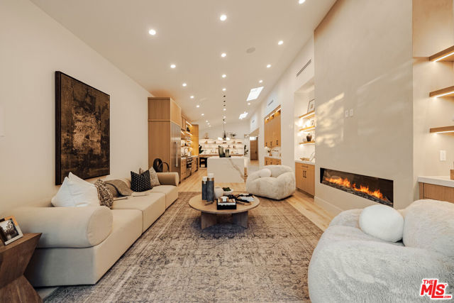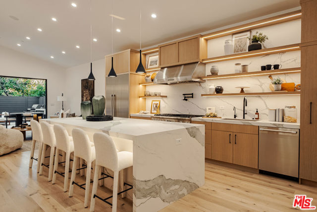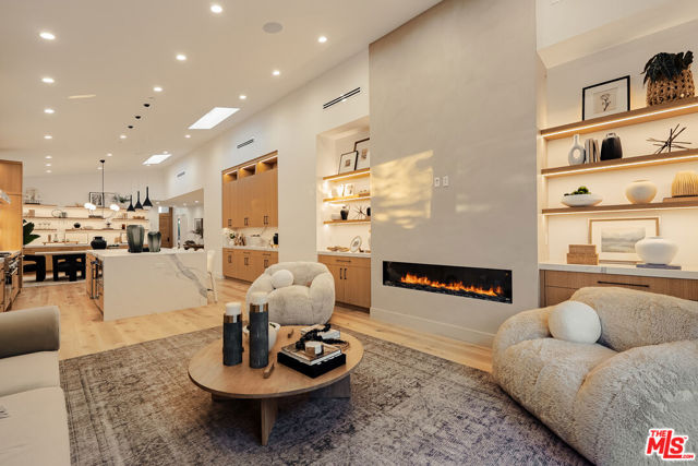 A Newly Completed Architectural Statement in Westside Village! Completed in 2026 with the finest of finishes, this stunning single-story architectural modern home offers an extraordinary level of craftsmanship, design, and comfort in one of the Westside's most desirable neighborhoods. This sophisticated residence features 4 bedrooms, 3 bathrooms plus an office, thoughtfully designed to blend dramatic contemporary architecture with warm, organic materials. From the moment you enter, the home reveals a breathtaking sense of scale and natural light. Soaring ceilings, sun drenched skylights, and walls of glass create an airy, gallery-like environment, while wide-plank wood floors and custom natural wood millwork add warmth and refinement throughout. The dramatic great room centers around a sleek modern fireplace and custom illuminated display shelving, creating a striking focal point for both everyday living and entertaining. The chef's kitchen is a true showpiece, designed for both beauty and performance. Custom cabinetry, dramatic stone countertops with full-height slab backsplash, professional-grade appliances, floating shelves with integrated lighting, and a sculptural oversized island with seating create a space that is as functional as it is visually stunning. The kitchen flows seamlessly into the dining and living areas, forming an expansive open-concept environment designed for modern living. The primary suite offers a private sanctuary, complete with a spacious custom walk-in closet and a spa-inspired bathroom featuring a freestanding soaking tub, oversized walk-in shower, dual vanities, and elegant stone finishes that evoke the ambiance of a luxury resort. Designed to embrace Southern California's indoor-outdoor lifestyle, sliding glass doors open to a beautifully designed rear entertaining retreat featuring an approximately 324-square-foot covered patio pavilion with exposed wood beams, a built-in BBQ kitchen, integrated outdoor lighting, and a built-in sound system, creating the perfect setting for evening gatherings and weekend entertaining. Additional highlights include designer lighting, custom built-ins, curated finishes throughout, and a sleek attached garage. Ideally located on a quiet tree-lined street in highly sought-after Westside Village, the home is moments from neighborhood parks, Clover Elementary, acclaimed restaurants, and the best of the Westside. This is a rare opportunity to own a newly built architectural residence where design, comfort, and lifestyle converge effortlessly.