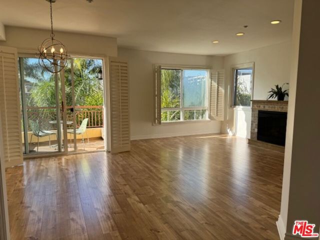 Beautiful bright 2 bedroom, 2 bathroom, front-facing unit bursting with natural light in a prime location! A very spacious living room with decorative fireplace and private balcony with sunset views! Enjoy cooking at the gourmet kitchen with stainless steel appliances and granite countertops. Primary bedroom suite features a large walk-in closet, double vanity sinks, and separate soaking tub. Enjoy hardwood floors, in-unit washer and dryer, central air conditioning, plantation shutters and recessed lighting throughout the unit. 2 assigned SIDE BY SIDE parking spots in a secure covered garage (with additional guest parking). Excellent location close to Beverly Hills, West Hollywood and the Grove. Walking distance to Cedars-Sinai, Beverly Center, and lots of great restaurants, cafes and shopping.