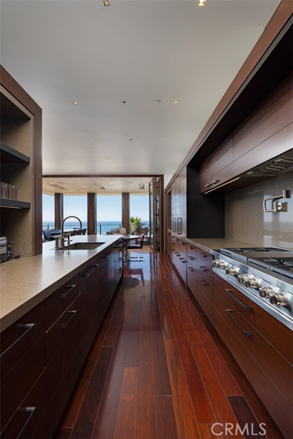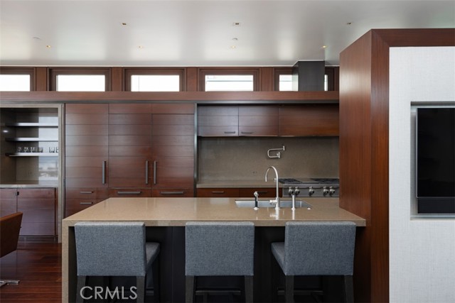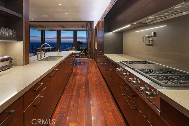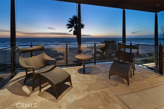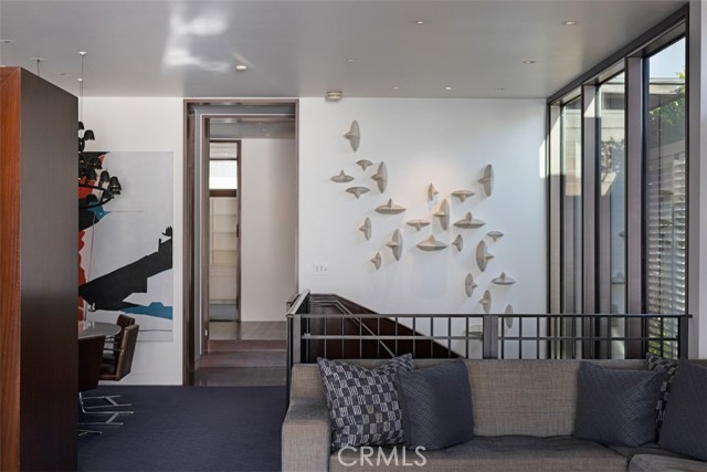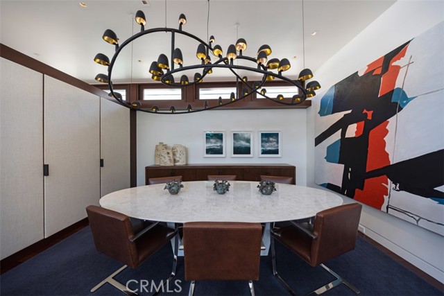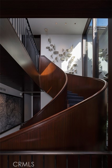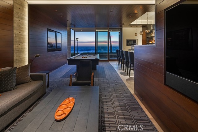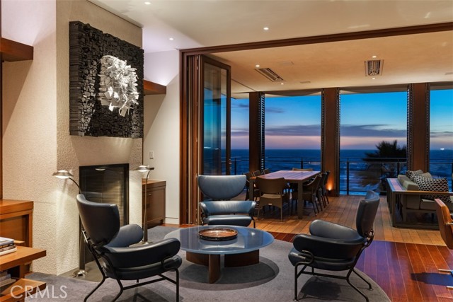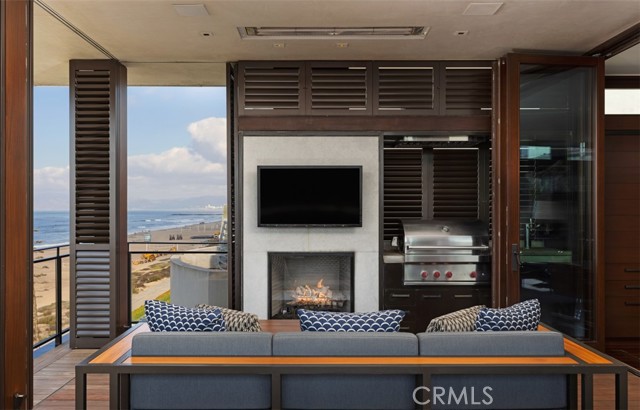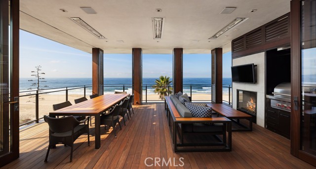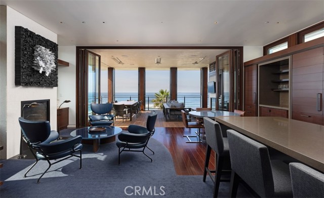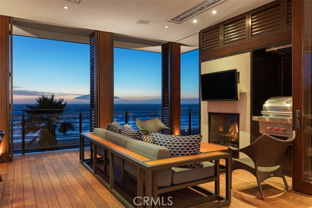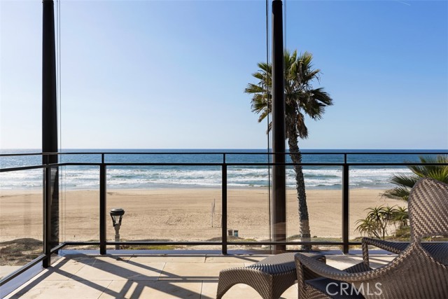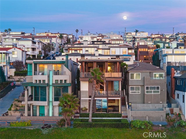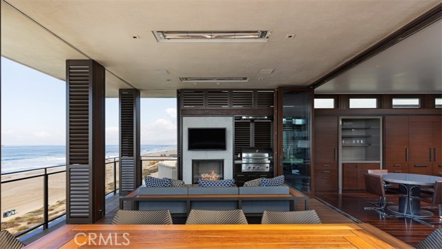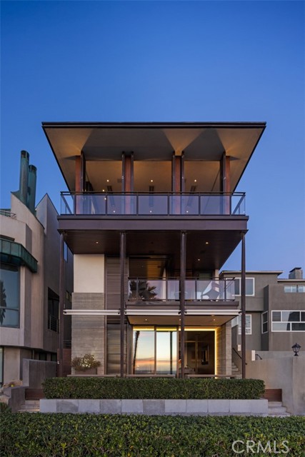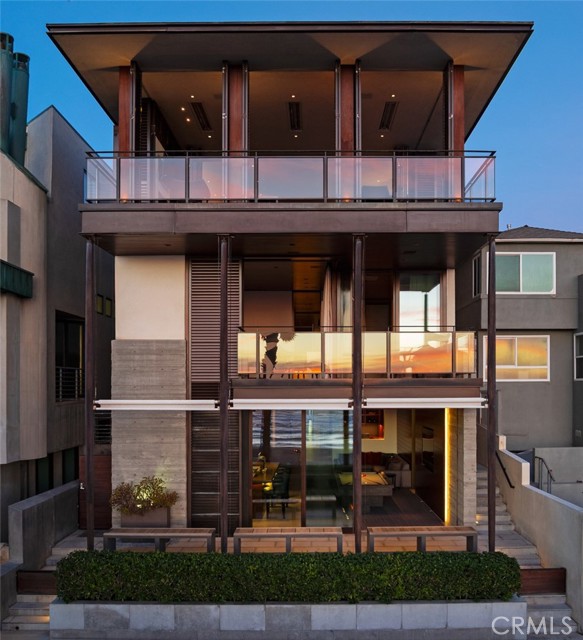 An exceptional architectural achievement by KAA Design and Matt Morris Development. Set along the iconic Manhattan Beach Strand, this remarkable residence overlooks one of the world’s most prestigious beaches with panoramic views from Palos Verdes to Malibu. A mahogany-clad circular staircase makes a dramatic first impression, linking the middle-level entry to the top-floor living spaces, while four levels of soaring 10-foot ceilings and floor-to-ceiling windows and doors bathe the home in natural light. Unique to the Strand, this estate offers bedrooms on all four levels. The top-floor outdoor living and dining area offers sweeping ocean views and uncommon privacy from the beach below, enhanced by bronze folding louvered panels that control light and protect the space from the elements. The west side features a beach room with an impressive bar, bronze shelving, lounge area, and pool table, while the east side includes a fully equipped gym and spa retreat. The level below offers a home theater, additional living area, wine cellar, and tasting room. With a striking beachfront façade framed by four two-story mahogany “masts,” the home preserves ocean views while providing privacy for the primary suite and Strand-level beach room. This extraordinary residence captures the essence of luxury Strand living.