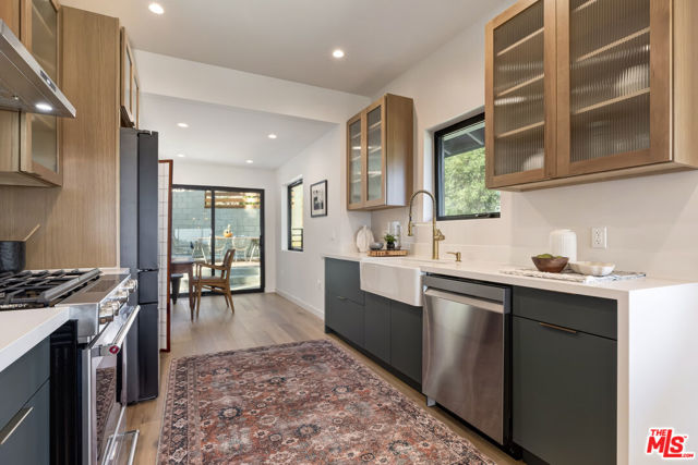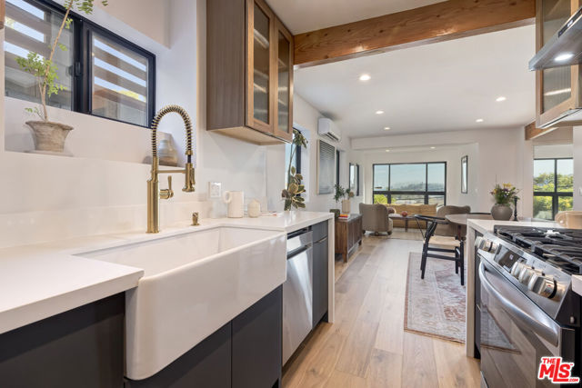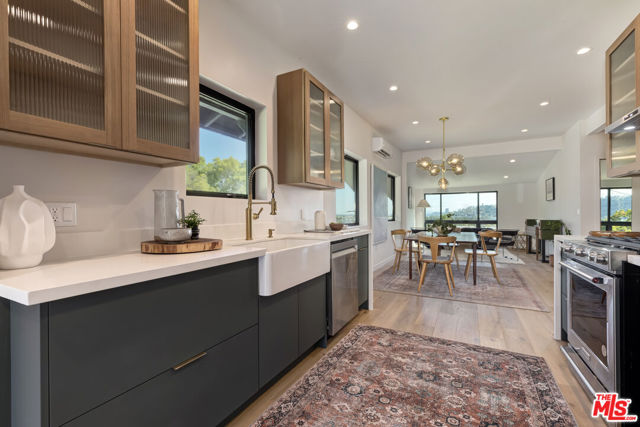 Substantial price cut on this beautifully updated duplex!! Embrace the perfect fusion of outdoor and indoor California living. Get the rare opportunity to live in one unit and rent the other in this serene sanctuary perched high above the street with views of downtown! This stylish and thoroughly renovated duplex is light-filled and sophisticatedly remodeled from top to bottom!! Newer double-pane windows, wood floors & doors, central ductless HVAC systems, updated electrical panels and wiring, copper plumbing, ABS drain lines, tankless water heaters, and the home was retrofitted, bolted. This space has all the modern updates! Each unit features stunning views through its oversized Industrial style windows, beautiful white oak wood floors, premium stone countertops, and recessed lighting, setting the stage for a refined living experience. The galley kitchens are a chef's delight, equipped with a farm-style sink, custom white oak cabinets on top, a stainless-steel appliances, a double-door refrigerator, a dishwasher, and all the modern amenities to inspire culinary creativity. The top-floor unit has two bedrooms and two bathrooms, open concept living room and dining room with mesmerizing views! Step outside to through the office area to discover the backyard oasis; perfect for entertaining guestsa private yard ideal for alfresco dining and gatherings. Additional conveniences include a laundry area with a washer and dryer, and storage space. The first-floor unit is a perfectly sized one-bedroom, one-bath unit with equally impressive views, wood floors, an office area, a galley kitchen, its own laundry space, and a large, stunning bathroom with a rain shower. The home features an oversized, usable basement perfect for storing your additional items, including bikes and weekend toys. There is one covered parking spot in front. This home is ideal for savvy investors or homeowners seeking extra income or a home office. It is conveniently located near freeways, Mt. Washington Gold Line, the Self Realization Center, as well as cafes and businesses in Glassell Park and Highland Park, such as Habitat, Target, Glassell Park Pool Recreation Center, LA Bike Path, Elyria Canyon hiking trails, Lemon Poppy Kitchen, Dunsmoor, Bub and Grandma's, and much more! This home is more than just a place to live; it's a lifestyle to be cherished. The upstairs 2+2 measures 1,062 sq ft and the downstairs one bedroom measures 695 sq ft (the basement area measures 276 sq ft and carport 222 sq ft).