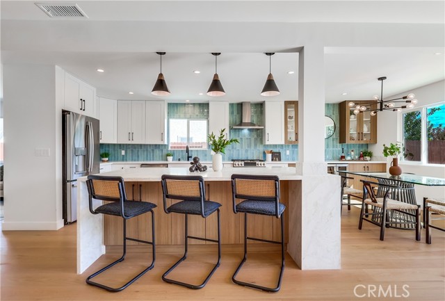 Welcome to 3564 Michelle Drive, located in one of Torrance’s most sought-after neighborhoods. This extensively remodeled 4-bedroom, 2.5-bath residence offers 2,108 sq. ft. of thoughtfully designed living space on a 7,200+ sq. ft. lot. Every element has been carefully modernized with high-end upgrades, creating a home that is both stylish and functional for today’s lifestyle. At the heart of the home, the open-concept kitchen and living area provide the perfect setting for gatherings. Hardwood flooring flows seamlessly throughout, complemented by designer finishes and abundant natural light. A sleek bi-fold door connects the interior to the backyard, extending the living space outdoors. The chef’s kitchen is a true showpiece with all-new cabinetry, countertops, premium appliances, and a striking waterfall island with built-in cabinetry and seating. The inviting living area is anchored by a cozy fireplace, ideal for relaxing evenings. The luxurious primary suite serves as a private retreat with a spacious layout, walk-in closet, and spa-inspired bath. An additional flex space adds versatility, perfect for a media room, playroom, or creative studio. Other upgrades throughout include fully remodeled bathrooms, new windows and doors, updated plumbing and electrical, all-new lighting, matte black hardware and fixtures, and an entirely new HVAC system and ducting with EV-charger readiness offering both efficiency and peace of mind. Conveniences include a 2-car garage with new drywall, updated electrical, and direct access, along with a dedicated laundry room with utility sink. Outdoors, enjoy a spacious patio and grassy rear yard—perfect for entertaining, play, or relaxation. Additional gated parking on the side of the house provides a huge area for RV and boat parking, a rare find in the neighborhood. Tucked away in a charming pocket of cul-de-sac–lined streets, this home is part of an established community within the highly regarded Torrance school district. With Delthorne Park, Del Amo Mall, fine dining, shopping, and the beach just minutes away, the location delivers the perfect balance of convenience, lifestyle, and coastal living. Move-in ready and beautifully crafted, this Torrance gem is the perfect blend of comfort, functionality, and modern luxury.