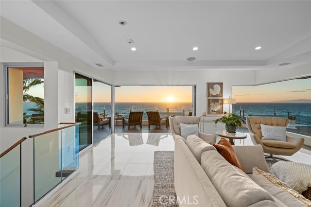 Perched just steps from the sand and the vibrant shops and restaurants along Highland Avenue, 3601 Bayview Drive captures the very essence of coastal Manhattan Beach living. From its commanding corner position, this residence offers breathtaking, unobstructable panoramic ocean views that rival those of homes on The Strand—where sunsets paint the horizon and the rhythmic sound of waves becomes part of your daily soundtrack. The top floor is the showpiece—a light-filled great room with a wraparound deck that feels like the bow of a ship overlooking the Pacific. The chef’s kitchen, outfitted with Thermador professional appliances, a stone-topped center island, and L-shaped counters, seamlessly connects to the dining and living areas centered around a natural-stone fireplace. Every detail draws your attention back to the 180-degree coastal views stretching from Palos Verdes to Malibu. The primary suite opens to a private south-facing deck and features a spa-inspired bath with a freestanding soaking tub, waterfall shower, and herringbone stone flooring. Two additional bedrooms share a beautifully appointed Jack-and-Jill bath. The lower level serves as a versatile “beach room” with soaring ceilings, a full bath, and direct access to an outdoor patio complete with a shower—perfect for rinsing off after a day at the beach. This entertaining space offers effortless indoor-outdoor flow and easy access to the sidewalk leading straight to the ocean. And don’t overlook the home’s rare three-car garage—a coveted feature ideal for storing cars, surfboards, and beach gear. Situated in one of Manhattan Beach’s most desirable locations with great walkability and convenient proximity to LAX, the 405 and 105 freeways, major employment centers, and surrounding coastal cities—this residence offers the ultimate balance of accessibility and serenity. With over $1.4 million in thoughtful renovations, 3601 Bayview Drive stands as a refined yet inviting oasis by the sea, blending craftsmanship, comfort, and the quintessential beach lifestyle.