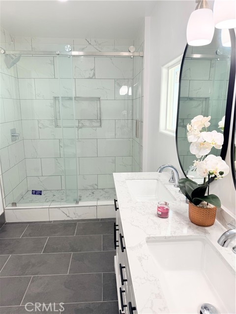 Welcome to this sought after ALL-AGES park. Exquisite remodeled manufactured home. Everything has been renovated with no details spared. 3 bedrooms with 2 full bath. New windows, flooring, plumbing, electrical, laundry hook ups and more. Main entrance welcomes you to the spacious living space. Open concept with contemporary kitchen furnished with stove and dishwasher. New cabinets with quarts counter-tops, self closing cabinetry, led lights through out the house. Master bedroom to the left with two closets, remodeled bathroom with his/hers sink. Rain shower, glass doors with self stopping mechanism. To the right you have two more bedrooms with spacious closets, new windows. Another well remodeled bathroom awaits with self stopping mechanism and rain shower head. Laundry room adjacent to kitchen with new water lines and hot/water hook ups. A wide deck with new flooring will let you relax and or entertain your family and friends. Property close to public transportation, freeways, restaurants. Close to Mt Sac community college and Cal Poly Pomona. Perfect for students. A lot of detail has gone into this wonderful home. Seller open to concessions. A must see to appreciate.