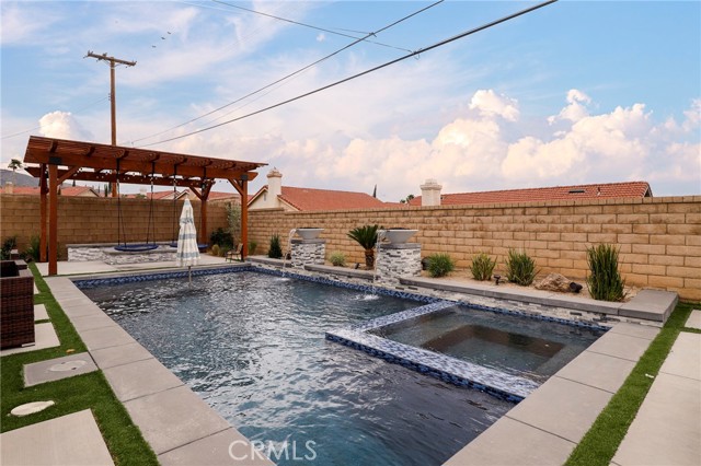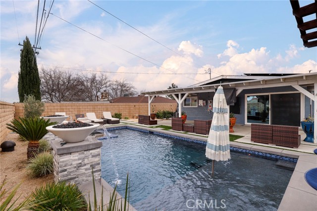 POOL HOME Back on the Market! No Fault on the Seller or the House. A must see, real showstopper backyard oasis—designed for relaxation and entertaining. Enjoy a private, heated saltwater pool and spa with pebble finish, waterfall feature, and gas heating, creating the perfect resort-like setting right at home. Welcome to your own private resort in the heart of Palmdale! This beautifully updated single-story home offers 3 bedrooms, 2 bathrooms, and stylish finishes throughout. With tile flooring, recessed lighting, crown molding, and a modern kitchen featuring quartz countertops and upgraded appliances. Additional highlights include central air, heat pump system, an attached 2-car garage, and leased solar for energy efficiency. Situated on a spacious lot in a well-established neighborhood close to parks, shopping, and schools.